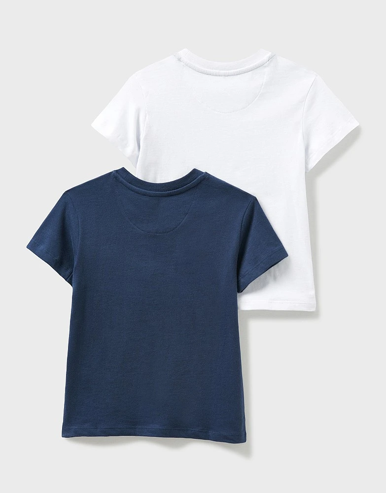 A two pack of classic t-shirts: one in navy and one in white. Simple but effective, these will keep their softness wash after wash. They’re ideal for school days.