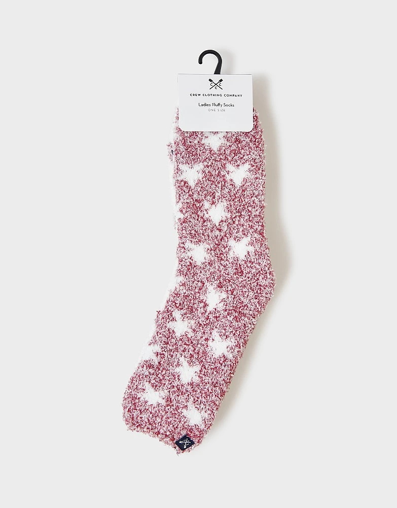 A two pack of fluffy socks in a star and rose print. Oh-so-soft, these socks are just the thing for cosy evenings at home. Just add ypur favourite pyjamas.