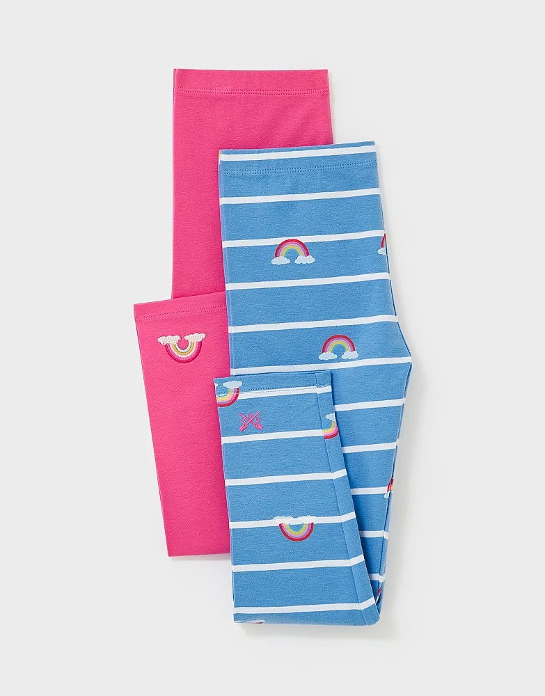 Chase the rainbow in our two pack of leggings: one in blue and white stripes and the other in pink. Oh-so-easy to pull on, these stretchy styles are sure to become favourites. Plus, they’re decorated with rainbows – need we say anymore?