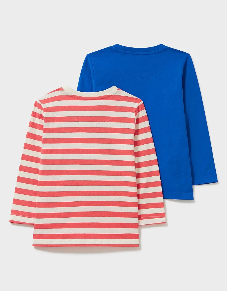 A two pack of long sleeve tees, one in blue and one in red and white stripes. Cut from 100% cotton and machine washable, these relaxed t-shirts are instant wardrobe winners and keep little arms covered. Equally stylish worn alone or layered under a sweatshirt, you’ll want to stock up on this year-round essential.