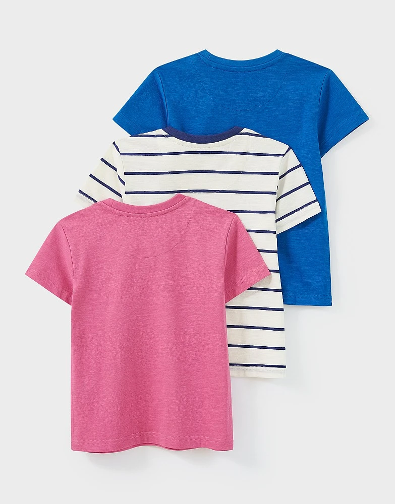 A three-pack of classic t-shirts. Styles include plain and striped options – so much choice! All made from 100% cotton so they’re super comfy and durable, perfect for your little one’s daily adventures. Simply pair with jeans and trainers.