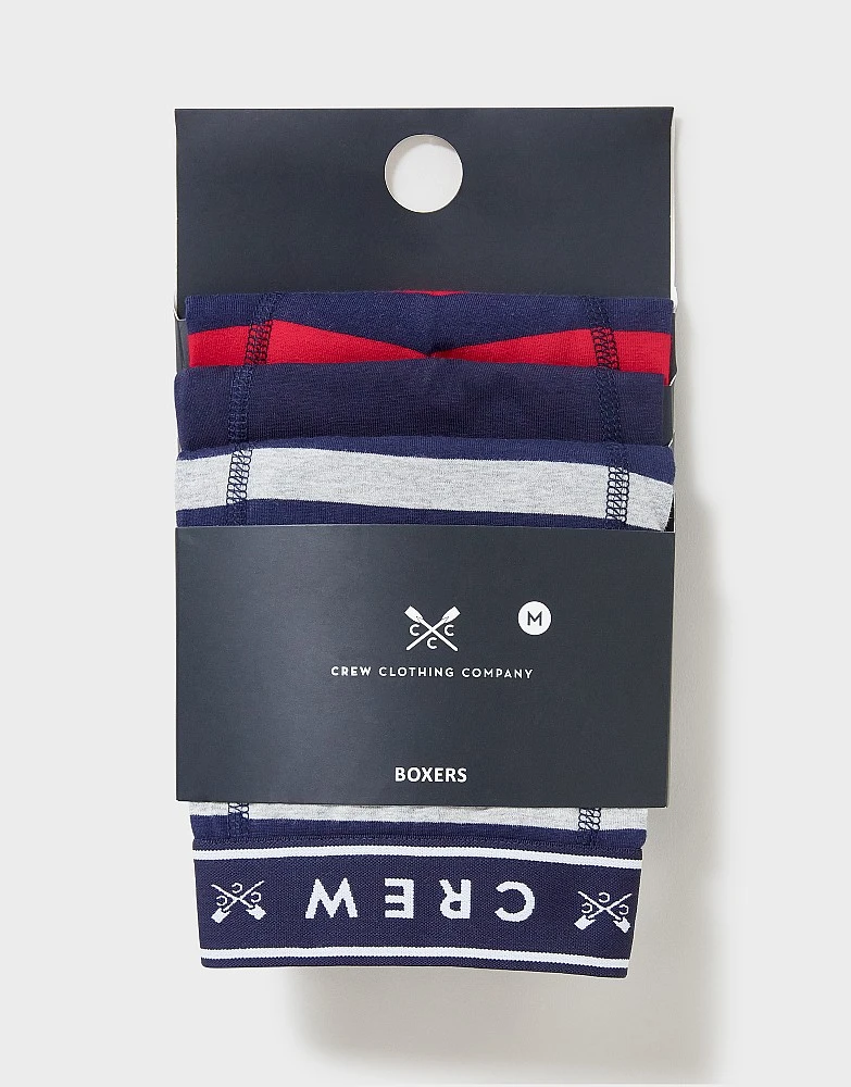 A three pack of boxer briefs in navy and grey. These are designed for easy wear with classic Crew branding on the waistband. Add to basket and you’ll have your essentials sorted.