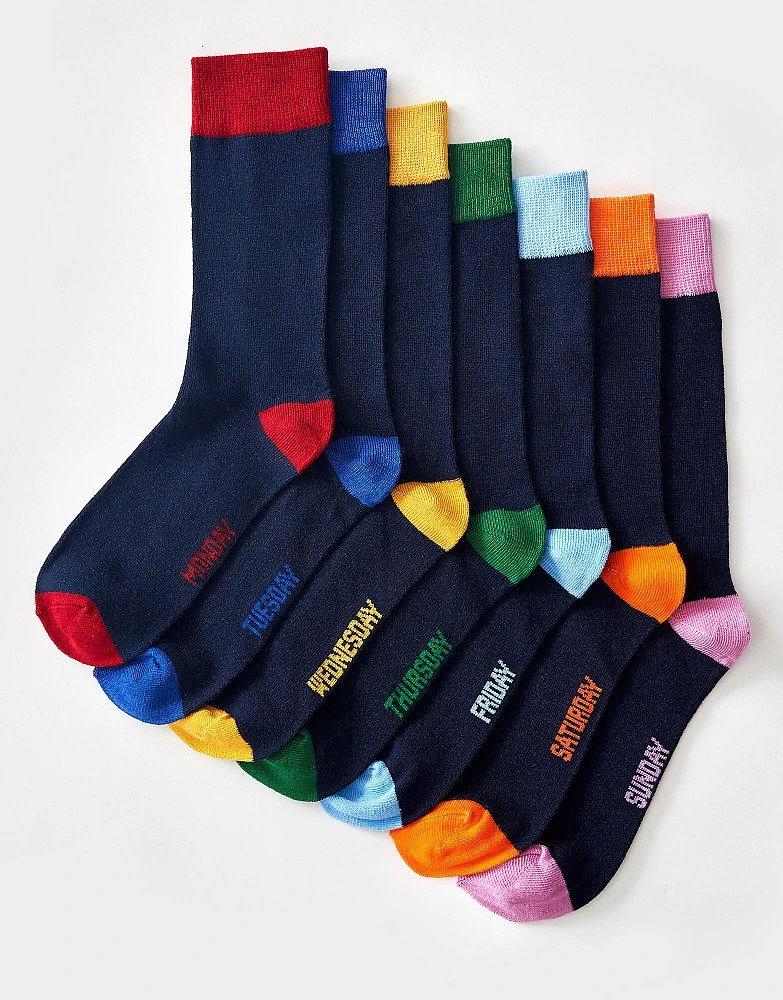 A multicolour pack of seven socks. Colourful and comfy, we’ve designed these in rainbow colours with a supersoft and extra breathable bamboo blend. They’ll add a pop of brightness on grey days.