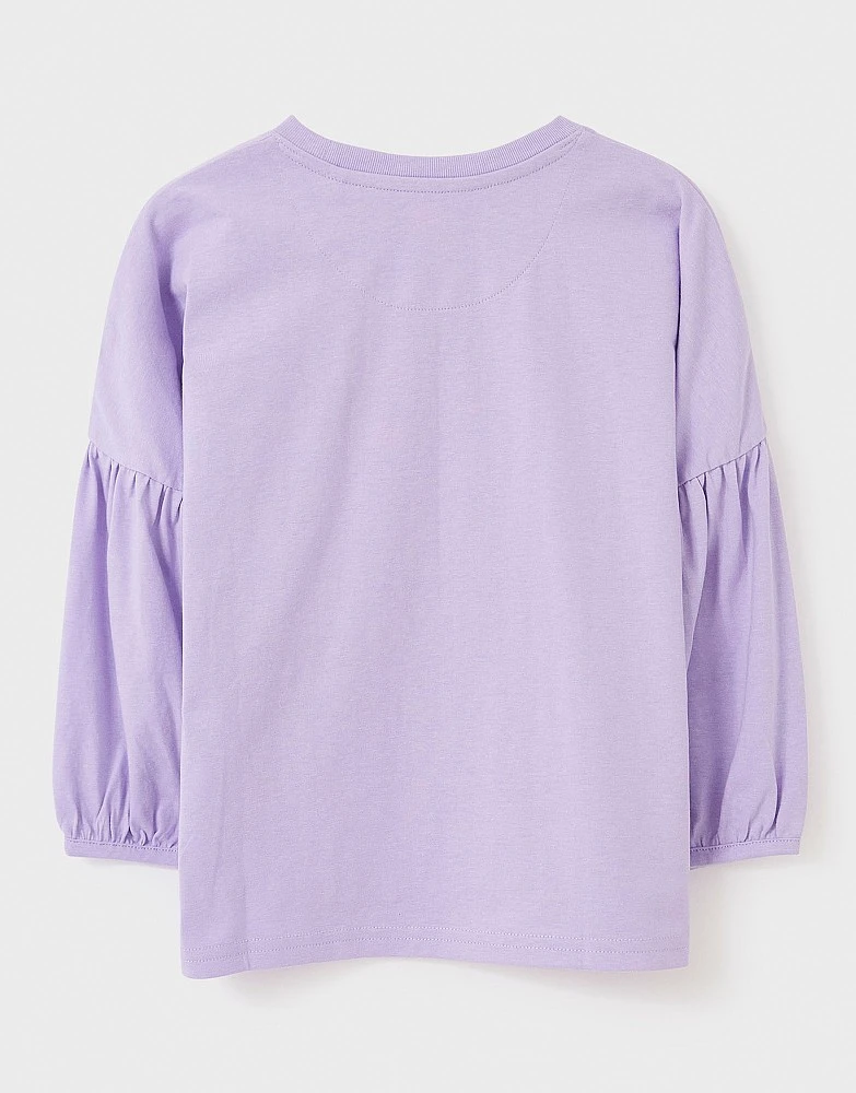 A blouson sleeved tee in lavender. Have your little one looking magical in this style, which features a unicorn print and ‘Love Crew’ motif on the front. Our embroidered crossed oars on the hem is the perfect finishing touch. She will look oh-so-cute pairing this with jeans and trainers.