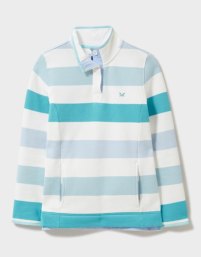 A half button sweatshirt in blue and white stripes. Why do we love this jumper? The funnel neck will keep you oh-so cosy, and the pockets will keep hands nice and toasty. Throw over a long sleeve top for walks by the coast.