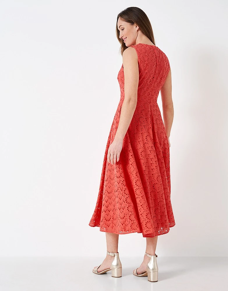 Endlessly swishable, our Bowline dress in cayenne red is perfect for all your summer events. We’ve added classic broderie to elevate the classic design, and made it in two dress lengths – this version is slightly longer. The best part? It has pockets. Pair with a cardigan when the sun goes in – it’s simply elegant.