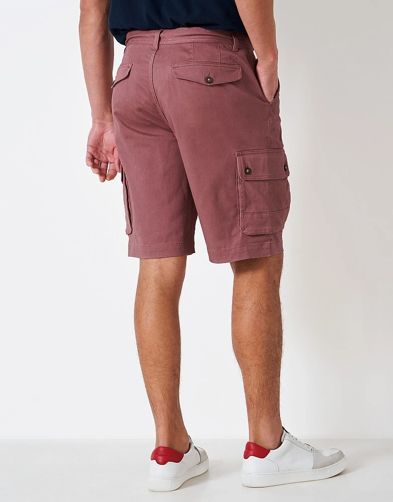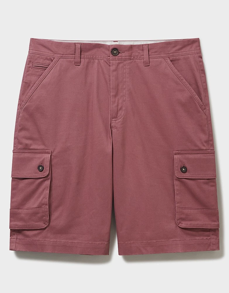 Practical cargo shorts in mauve. A relaxed fit and multiple pockets make these shorts the comfortable choice when the weather picks up. Team with a t-shirt and decks for laid back summer styling. A versatile addition to your wardrobe.