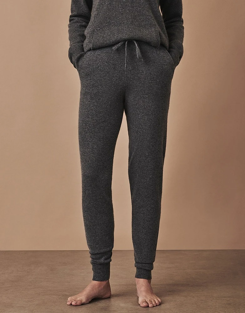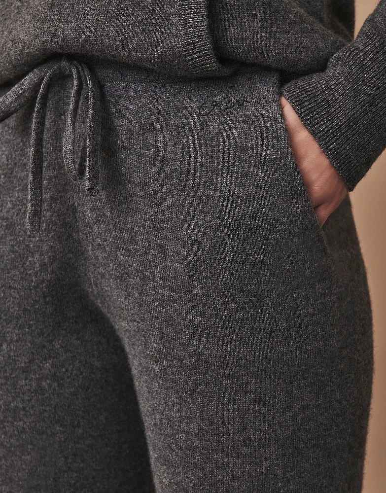 Cashmere joggers in grey marl. Made to pair perfectly with our matching cashmere hoodie, these supremely soft joggers will add a little luxury to your everyday look. We like them best teamed with slippers inside and trainers outside.