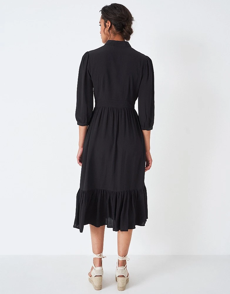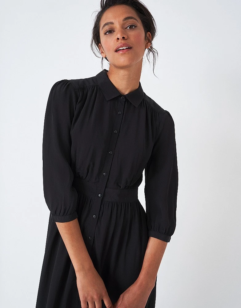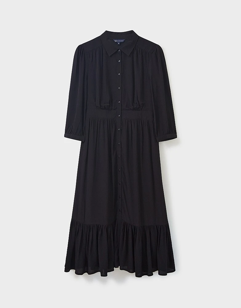 A black shirt dress with a little something extra. We absolutely adore the tiered hem on this sophisticated style – perfectly finished with soft gathers and expertly cut darts to create a shape that’s designed to flatter. From Saturday afternoons at the cricket to dressy days out at the tennis, this dress will take you there. Just add trainers.