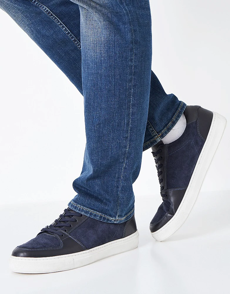 Step out in our Charlie leather trainers. Made from buttery-soft navy leather, these have comfort written all-over them. We love the contrasting grey suede detailing and pop of colour on the heel – stylish yet ever-so practical. Pair with anything from jeans to joggers for instant polish.