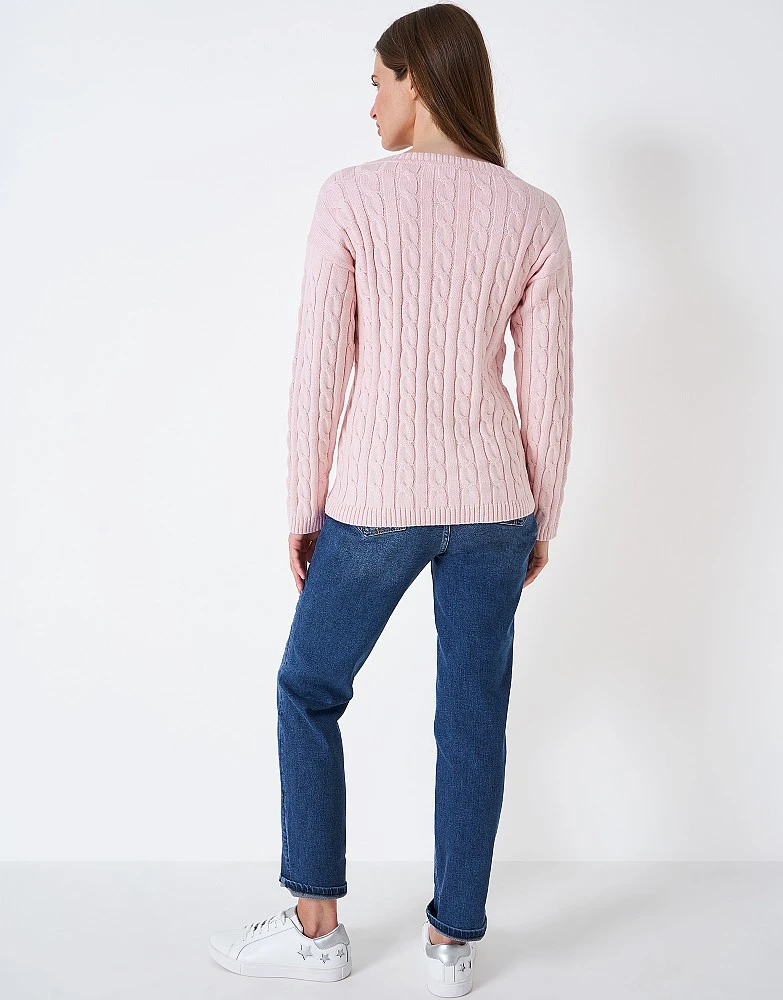 Our chunky cable v neck jumper in lilac. We love the all-over cable stitch and the v-neckline is a flattering addition. Pair with anything from jeans to midi skirts – your wardrobe will thank you.
