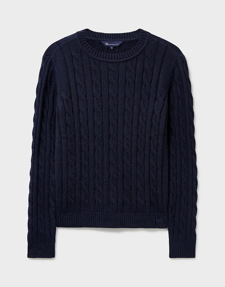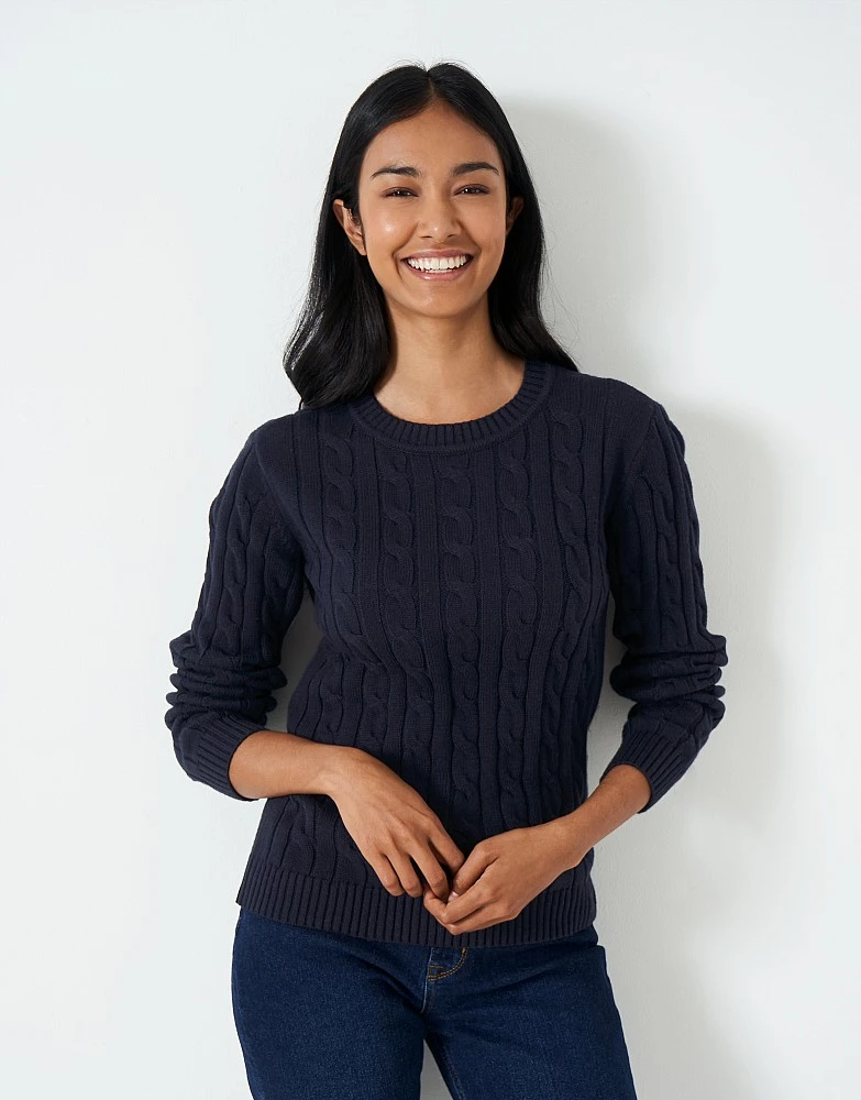 Our chunky heritage crew neck jumper in navy, featuring a cable knit stitch. A classic design you’ll turn to time and time again, just add jeans. A wardrobe favourite.