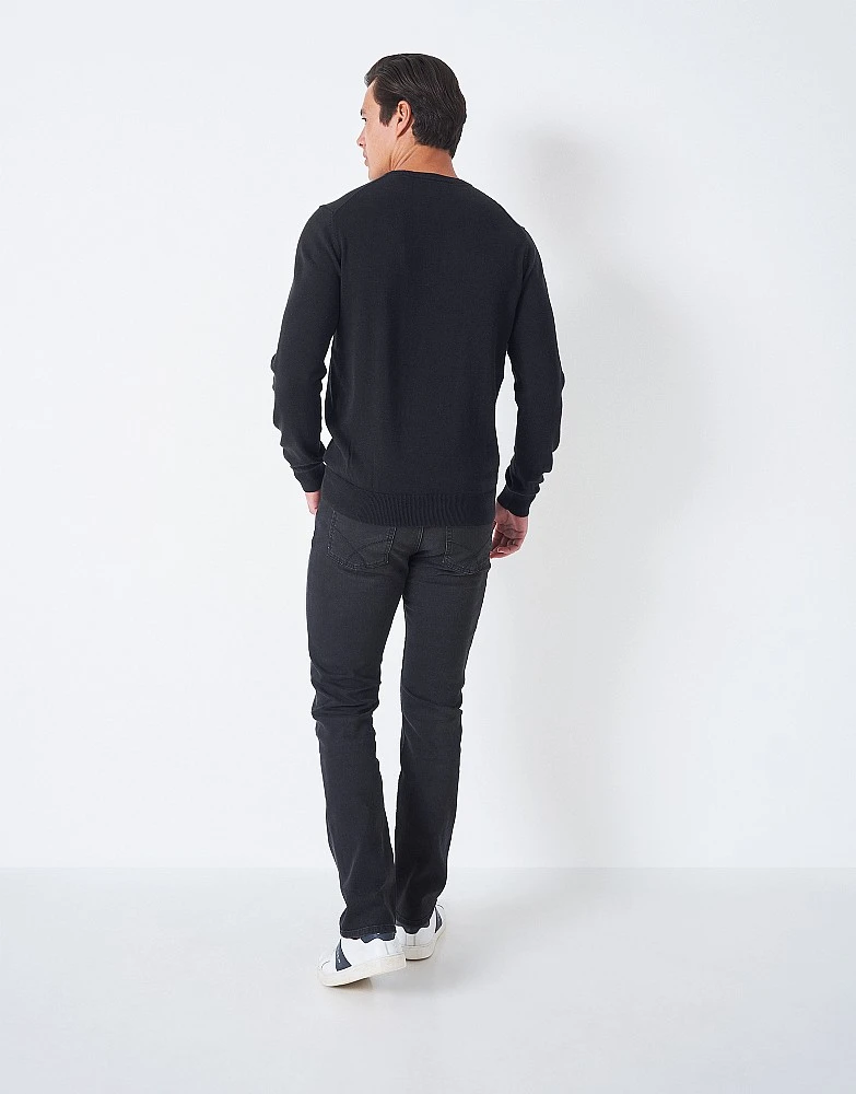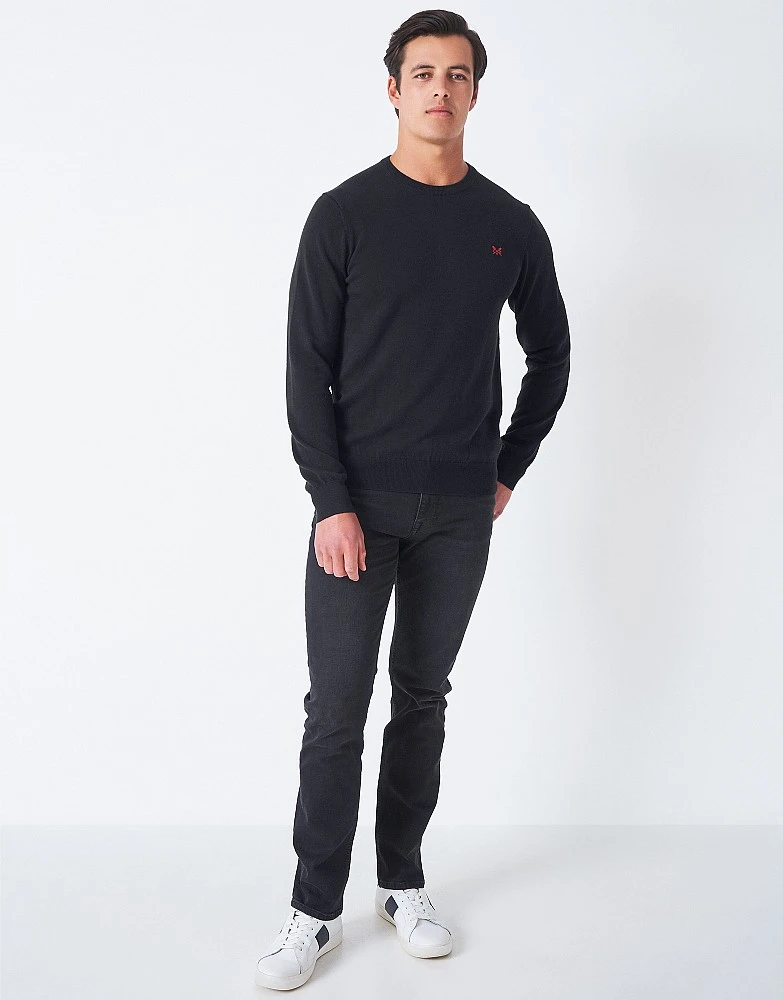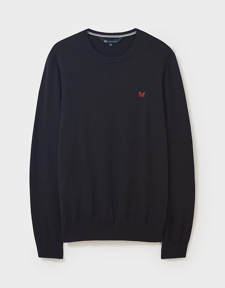 Our classic cotton crew neck in black. Perfect for layering, this features a double ribbed collar, stripe detailing inside the neck and our crossed oars stitched on the chest. A classic you’ll wonder how you ever lived without.
