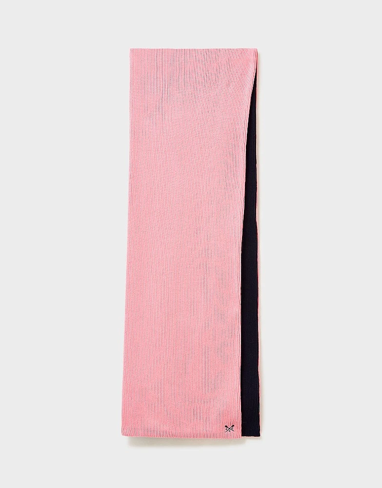 A cotton scarf in navy and pink. Soft and stylish, this will add a splash of warmth to your ensembles and will set off a plain coat and knitwear. Wear with the matching gloves.
