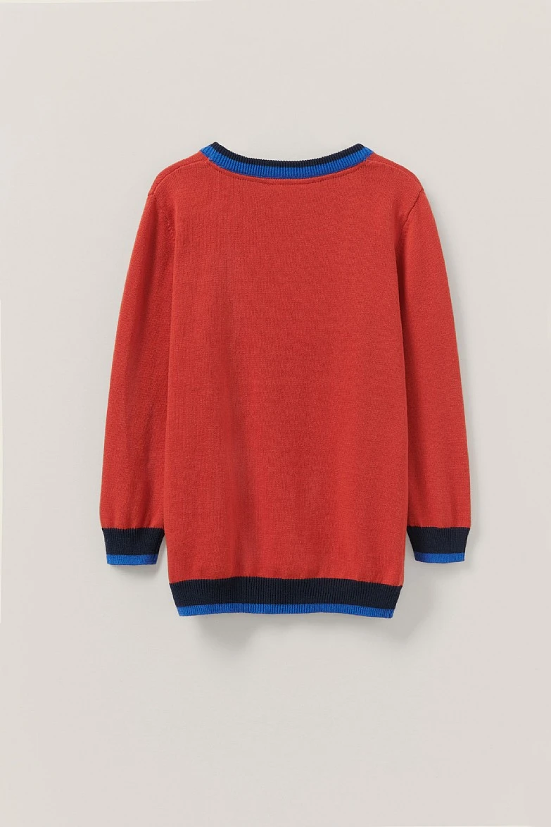 A crew neck jumper with a coastal inspired twist. As stylish as it is toasty warm, we’ve finished this orange knit with a tactile fluffy crab. This cosy jumper is even machine washable, making it perfect for beach adventures. Pair with chinos for a look taken straight off the boat.
