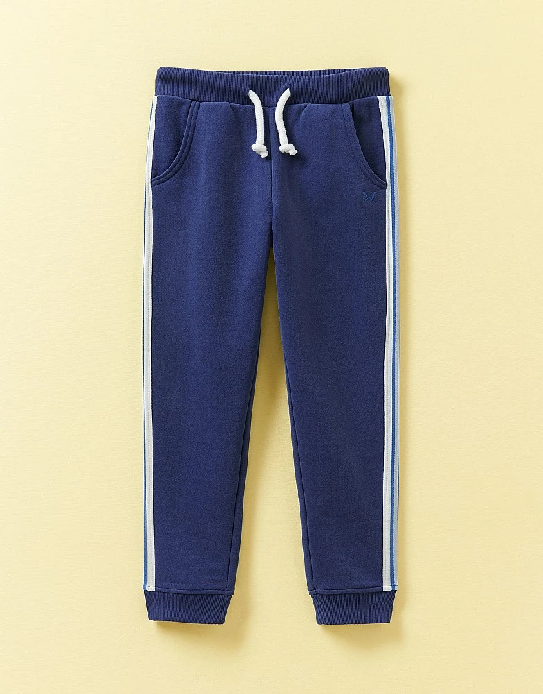 Calling all future sports stars: say hello to our soft jogger in navy. Crafted from comfortable cotton jersey, we’ve added a go-faster stripe down the leg for a little extra detailing. Team with a sweatshirt and they’re ready for anything.