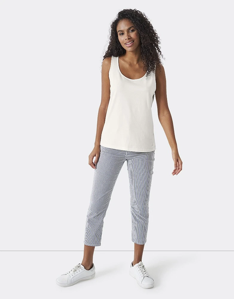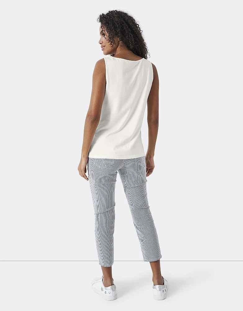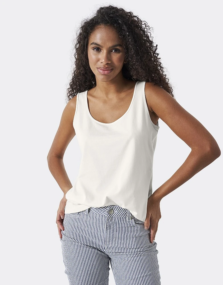 A white vest. In a timeless colour, this is breathable and the perfect versatile top for when the temperature warms up. Add to wardrobe essentials.