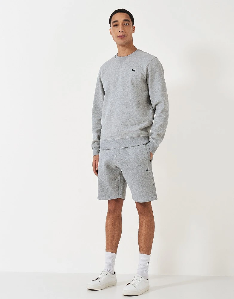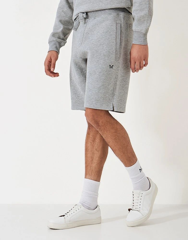 Sweat shorts in grey marl. Practical and comfy, pair these with a t-shirt for a relaxed but still pulled-together look. We’ve embroidered our signature crossed oars below one of the pockets.