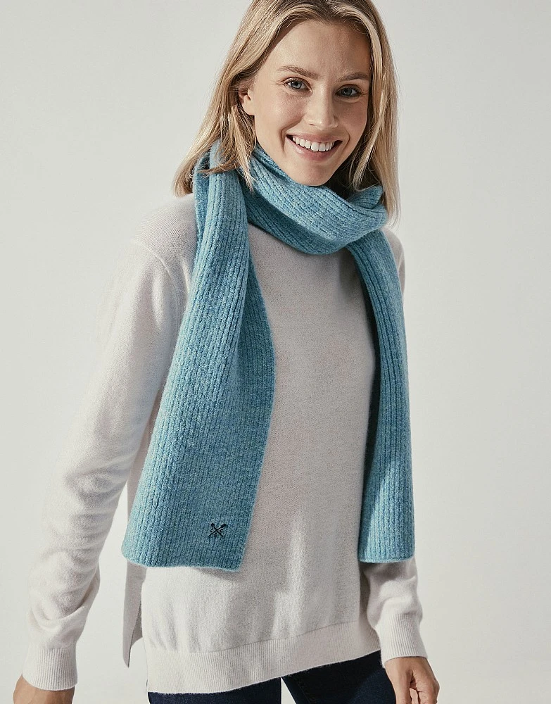 Our Ellesmere scarf in blue. Cosy and soft, make this your cold weather go-to. Add the matching gloves.