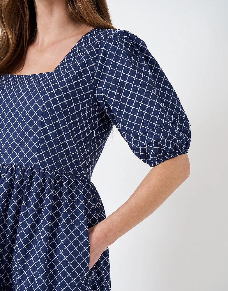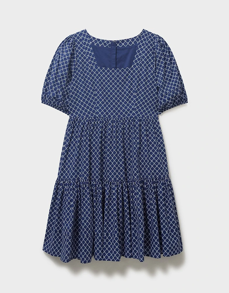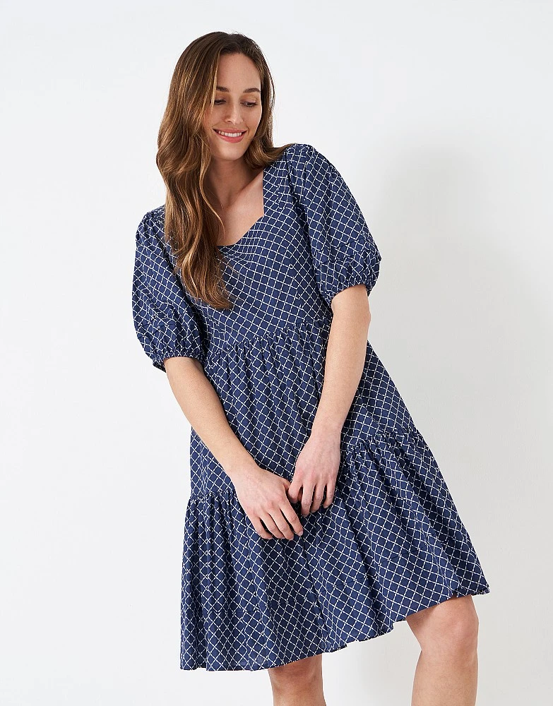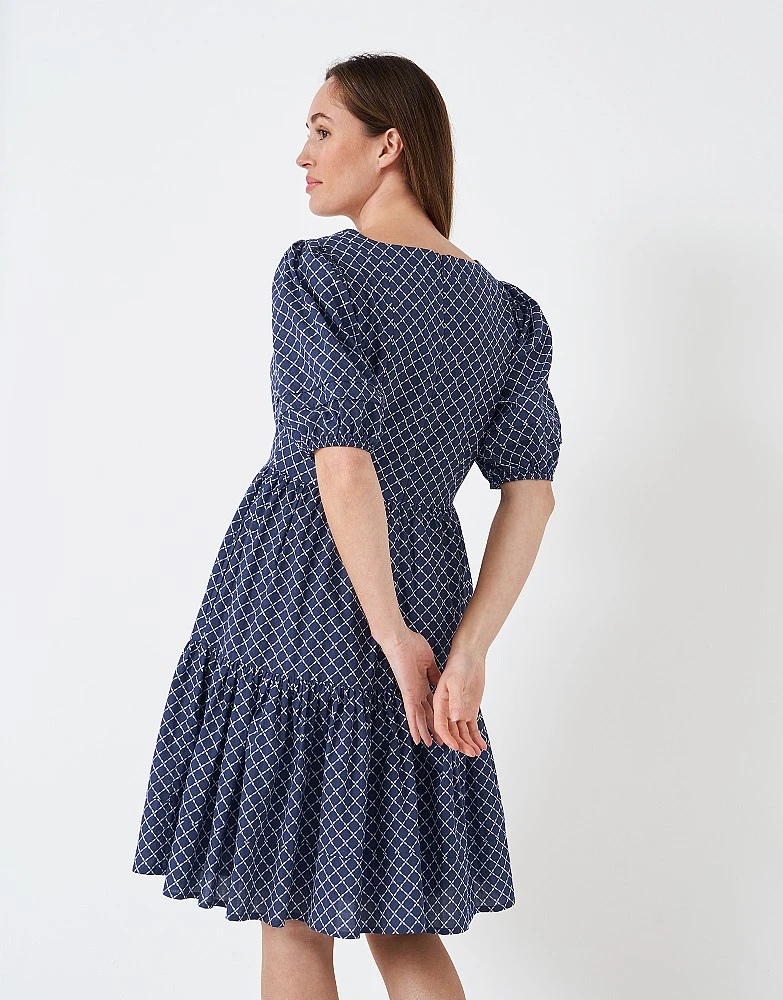 Introducing Ellie, a tiered mini dress in navy. We love the all-over print, but the details don’t stop there. Also featuring a flattering square neckline, elasticated puff sleeves and plenty of drama thanks to the gathered layers. Pair with espadrilles and step out.