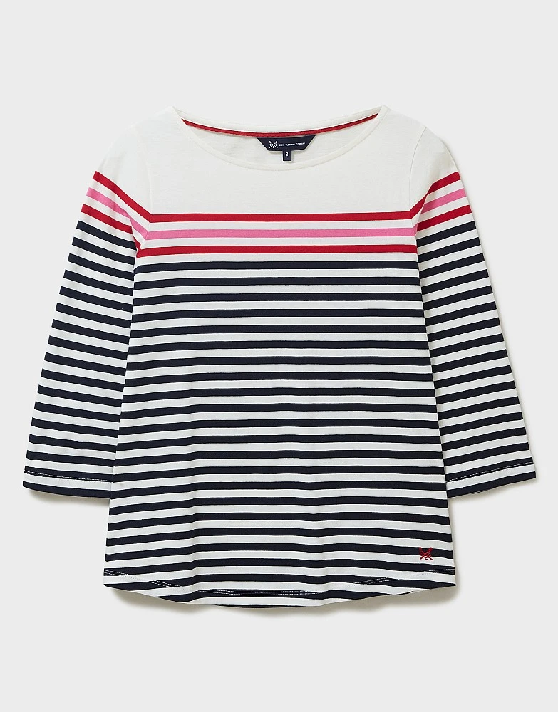 Our take on the classic Breton top in white, navy and pink stripes. A wardrobe staple made from lightweight super soft cotton, we’ve added a curved hem for a flattering fit. Style with jeans and trainers on days off. Because stripes always look good.