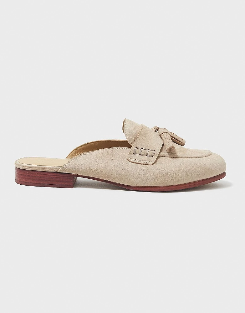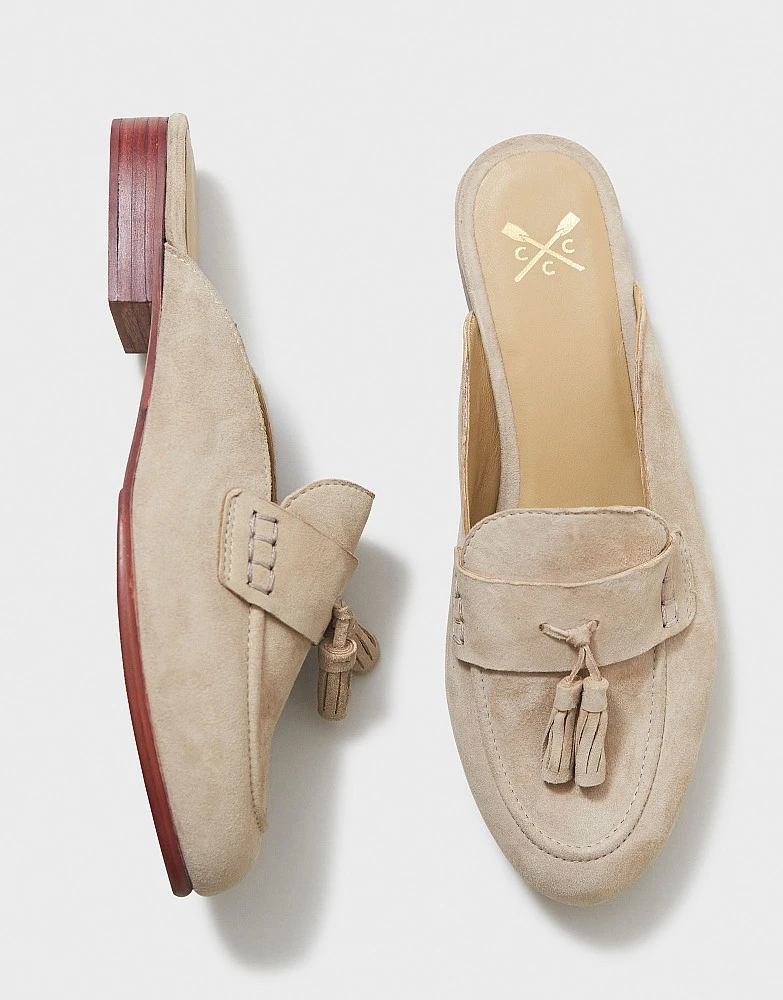 Backless loafers in nude. Cut from supersoft suede, these slip on shoes are finished with a classic tassel and our crossed oars stamped on the sole. Whether you pair with jeans or a skirt, these shoes loafers are simply stylish.