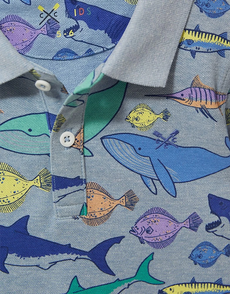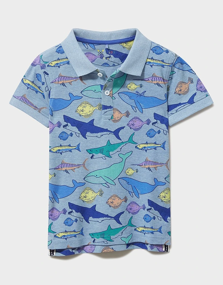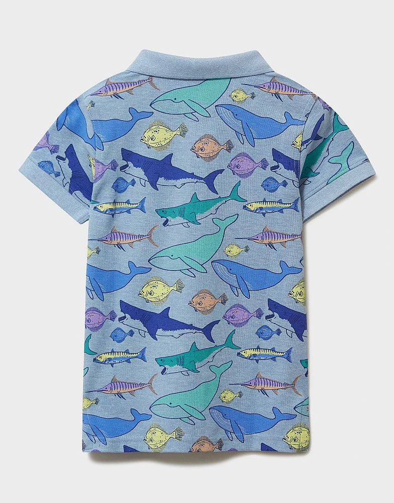 A pale blue polo shirt. Featuring a fun all-over fish design and the same finishing touches as our classic style. The perfect addition to your suitcase – it’ll suit your summer wardrobe swimmingly.