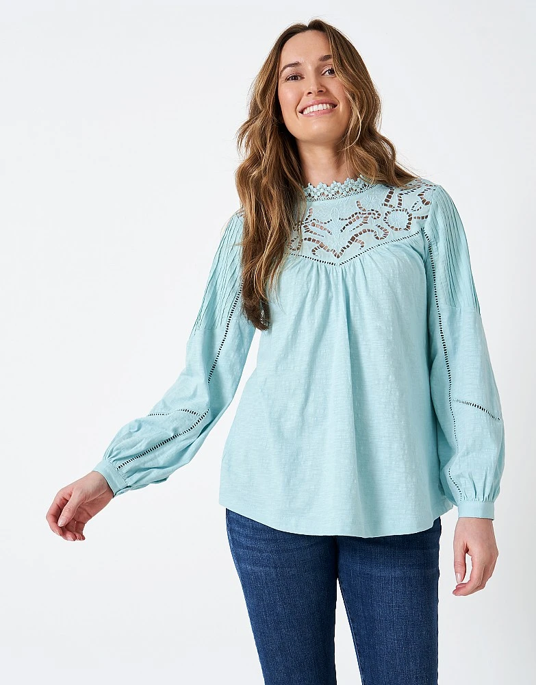 Introducing our Gabor top in mint. We’re in love with the pretty laced and feminine frills, lending to the elegant feel of this top. Simply pair with denim and you’ve got yourself an effortless outfit that looks polished.