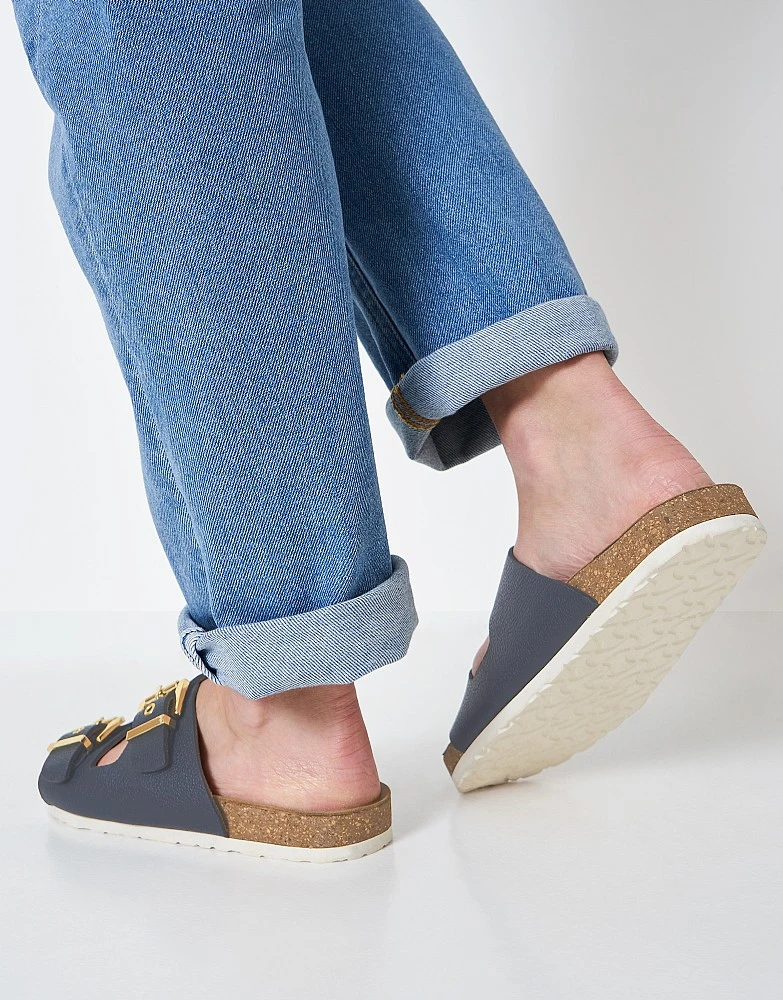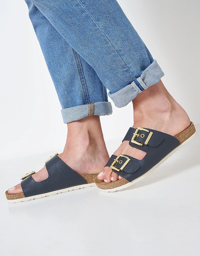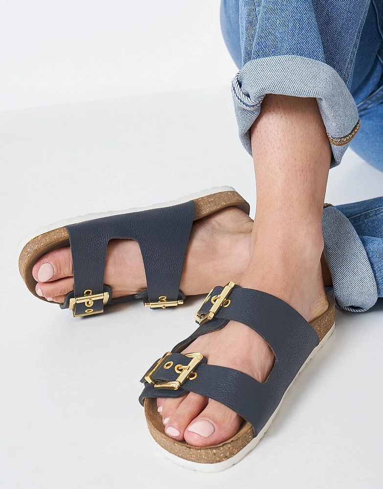 Our Gemma sandals in navy. Cut from soft leather with stylish metal buckles, these classic sandals offer wear-all-day comfort. Team with jeans for a casual summer look.
