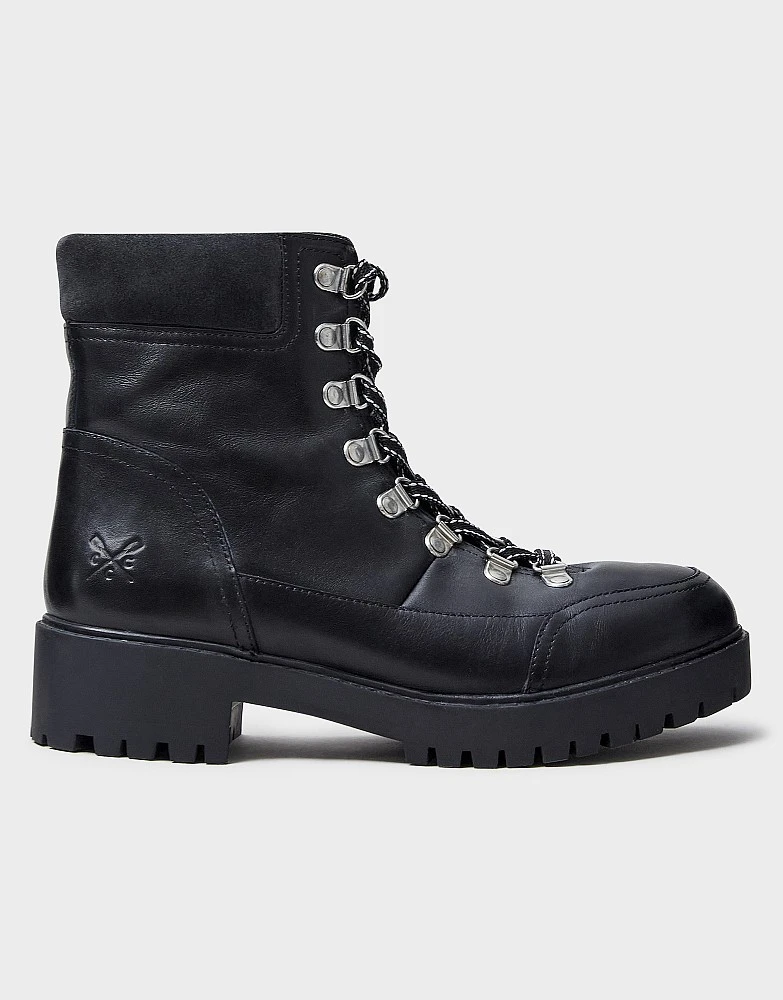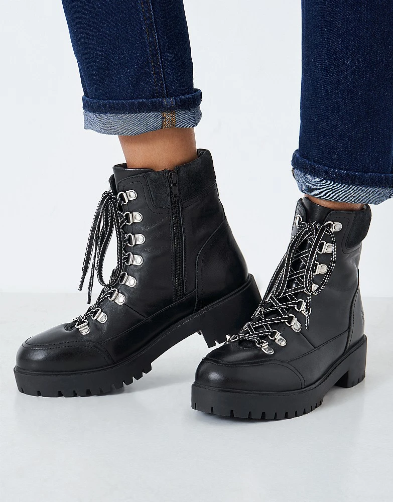 Our Iris hiker boots in black. With combat-style laced detailing, a sturdy sole and a shape that’ll become slouchy with wear, this a contemporary style that’ll add edge to any outfit.