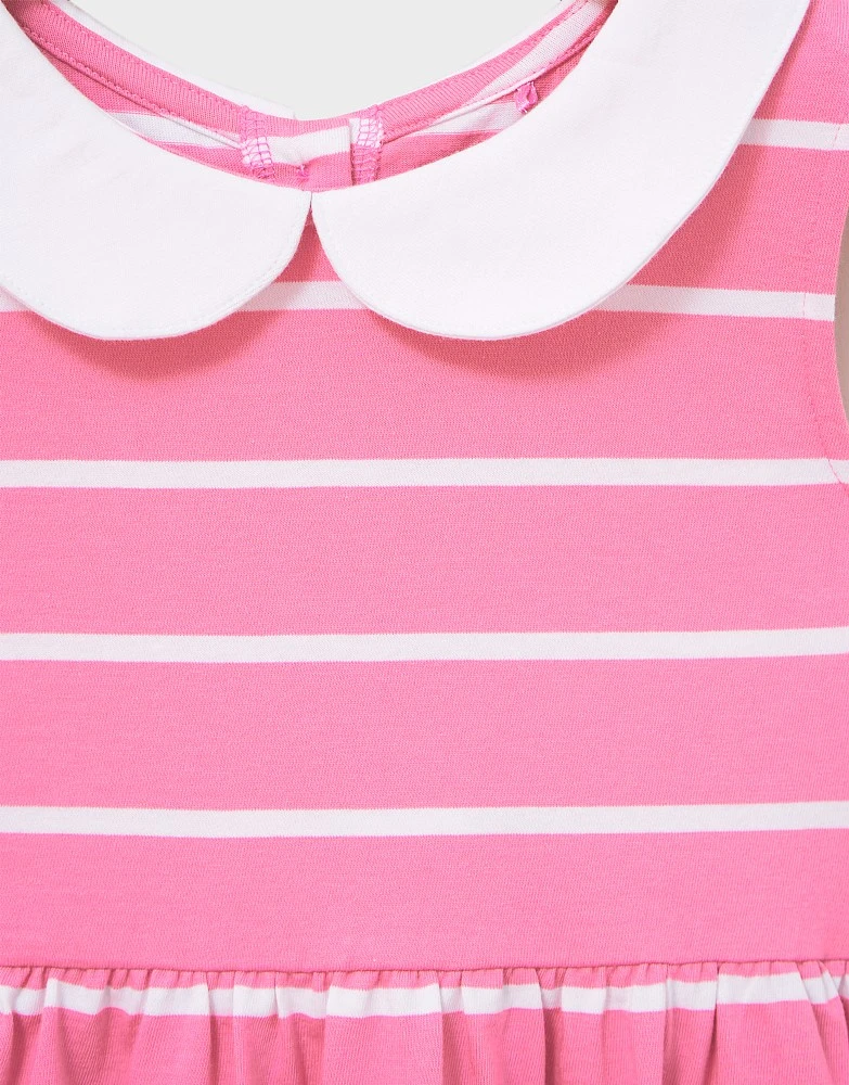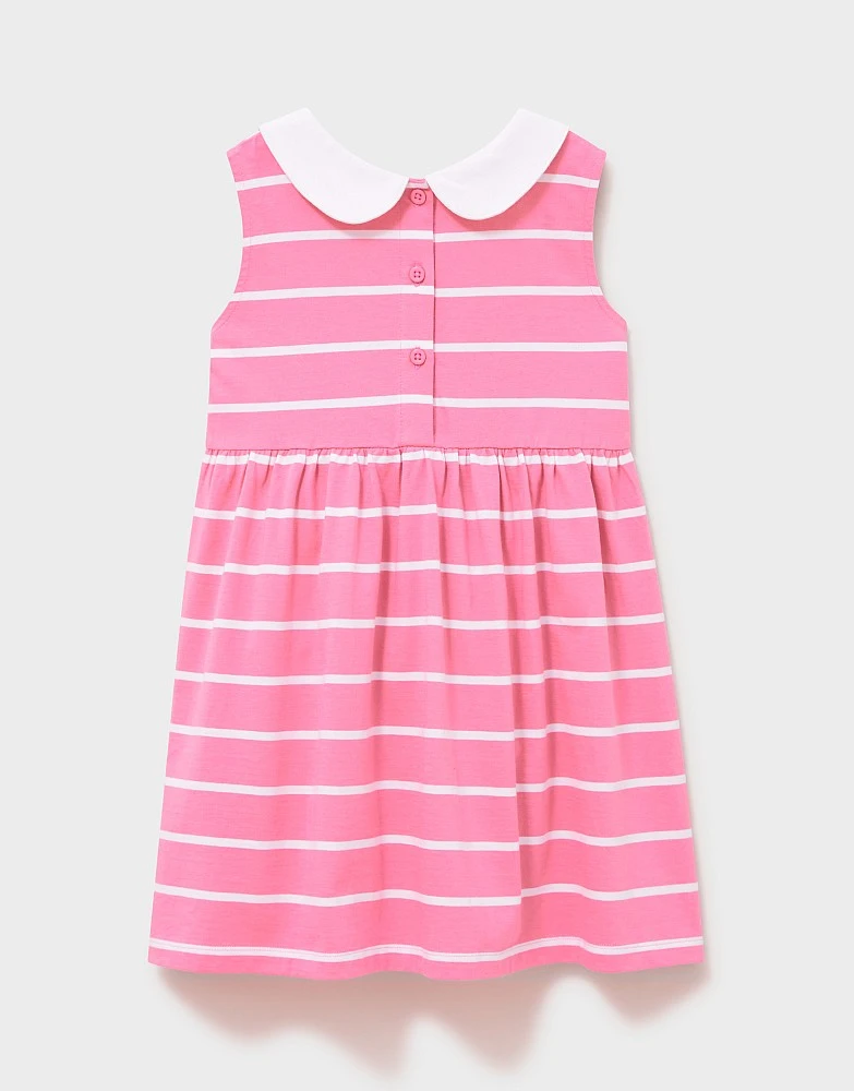 A pink and white striped dress. Cute and comfy and boasting a pretty Peter Pan collar, this is ideal for everything from party time to day trips out and about. We love it, and she will too.