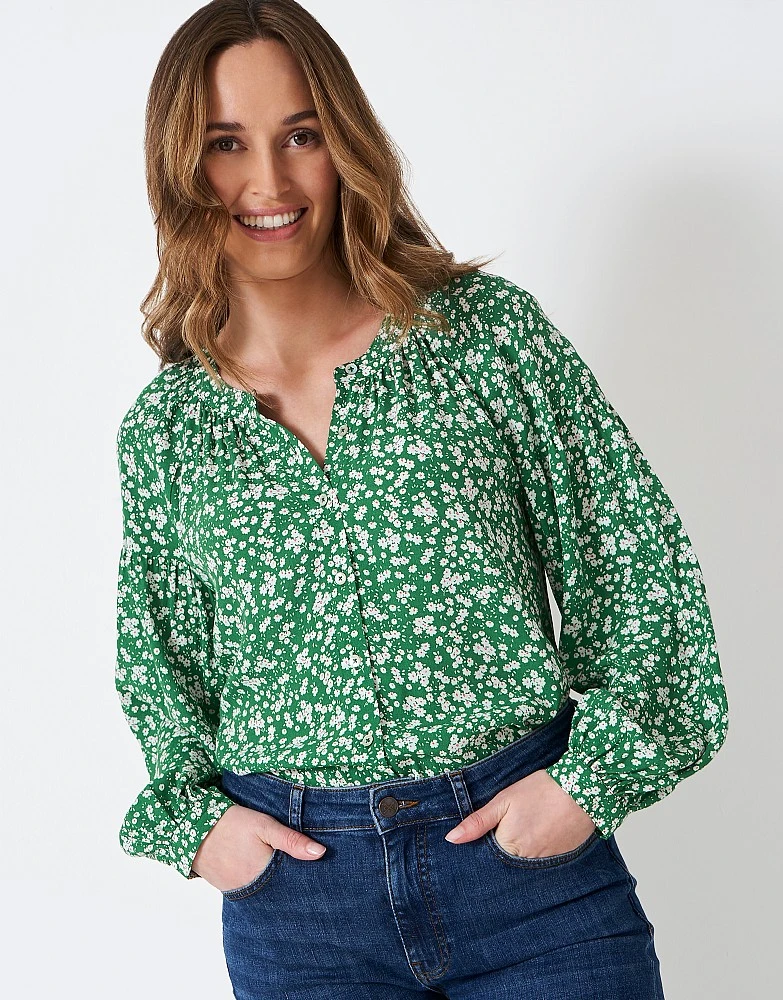 Introducing our Leila blouse in green. Featuring blouson sleeves, button-down detailing and an all-over floral print (hand-drawn no less). An effortlessly stylish number that’s the perfect ‘nice top’ for your jeans. Pair with trainers or heeled espadrilles.