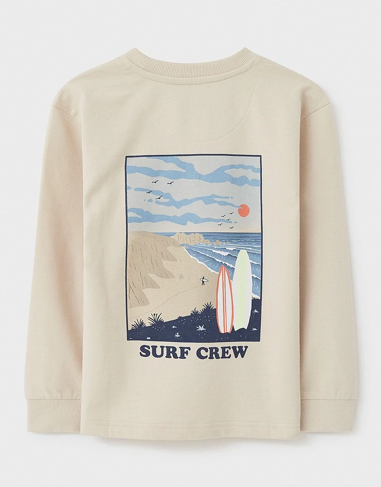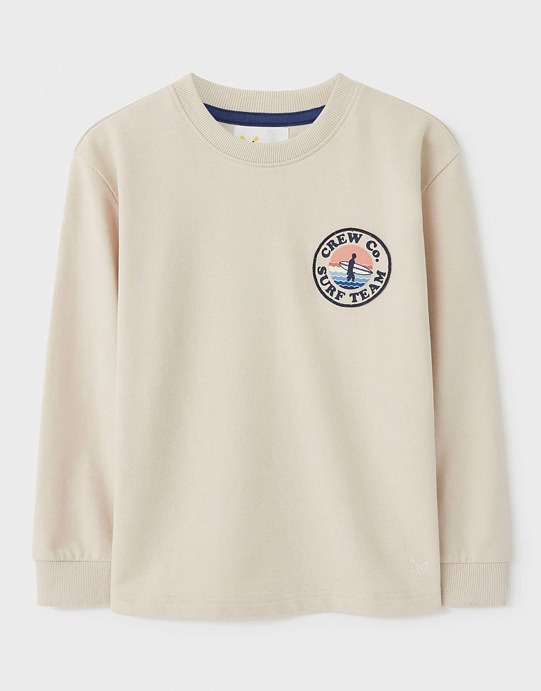 A supersoft sweatshirt in cream. Calling all little surfers, this style comes finished with our team emblem. Dress your little ones for the club – everyone’s invited.