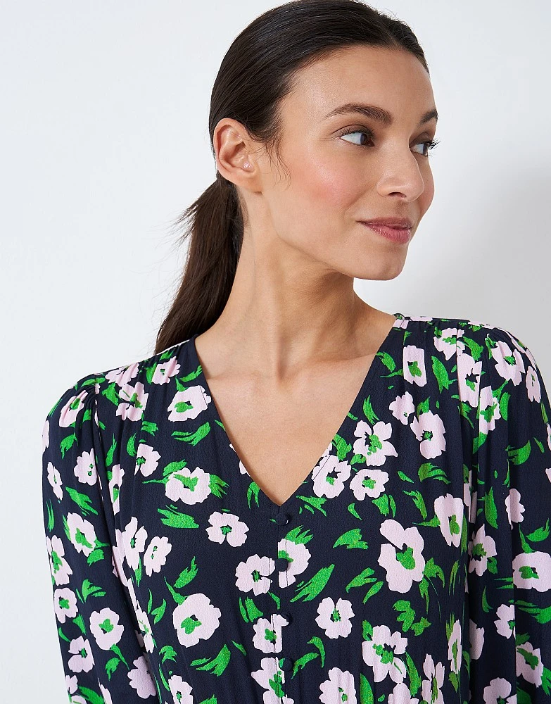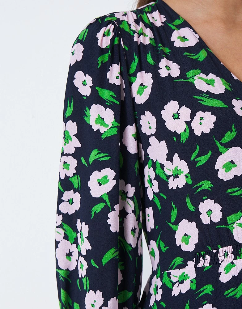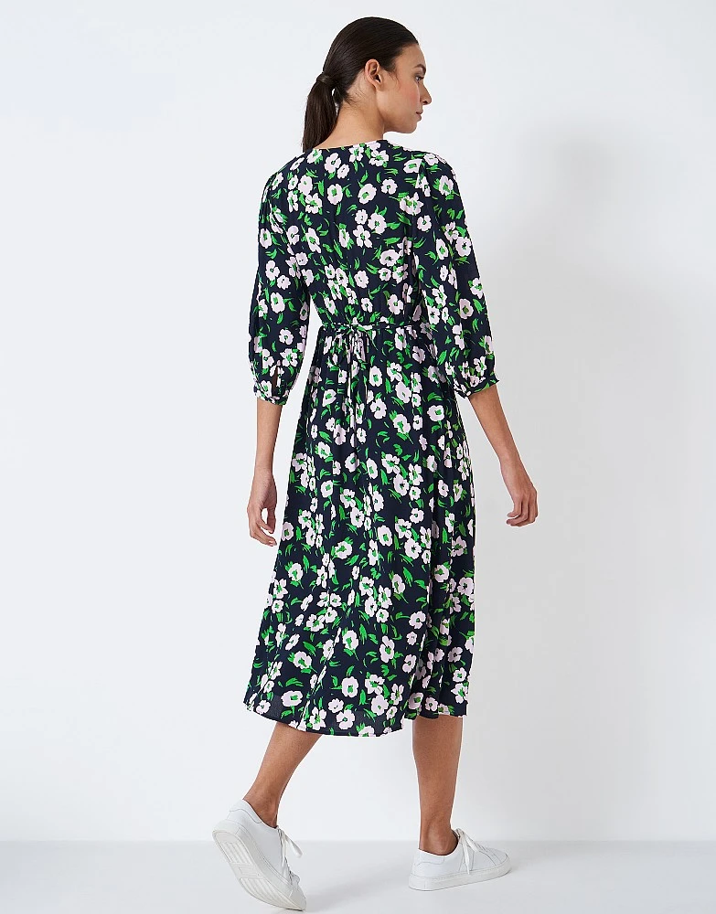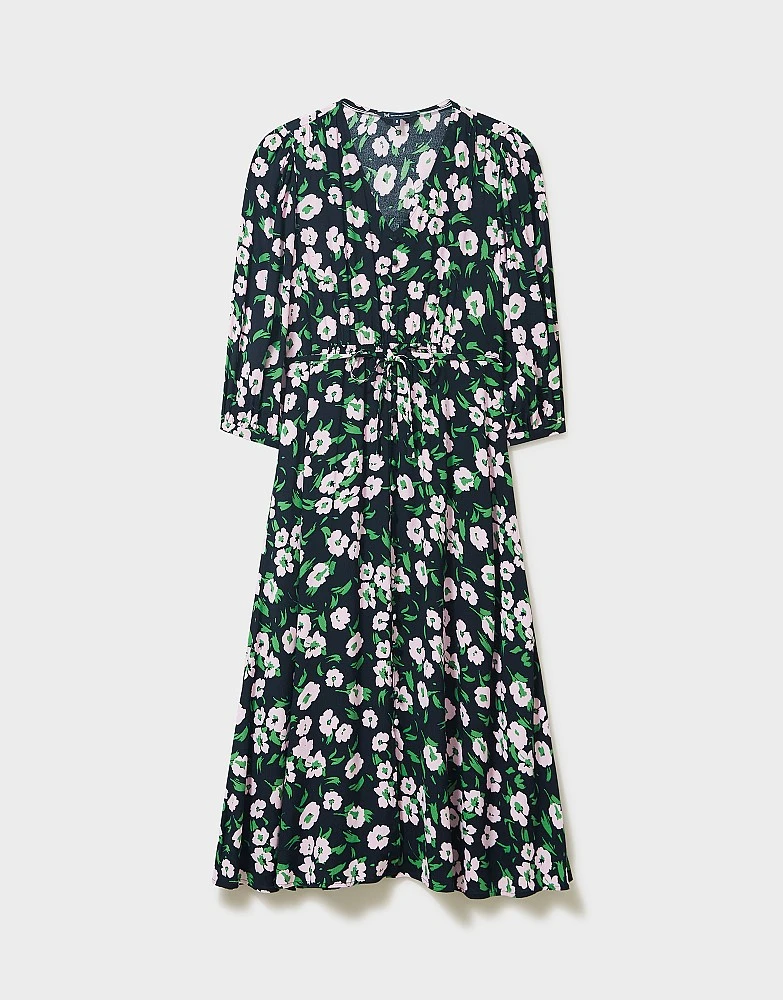 A midi dress in green and black floral. From the flattering v-neckline to the oh-so-cute cuff sleeves finished with a fabric-covered button, every detail has been considered. When it comes to your wardrobe, you only deserve the best.