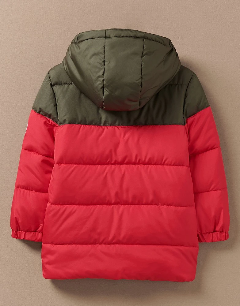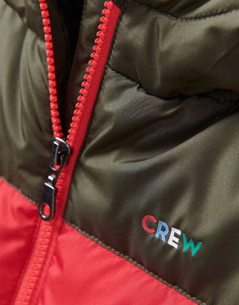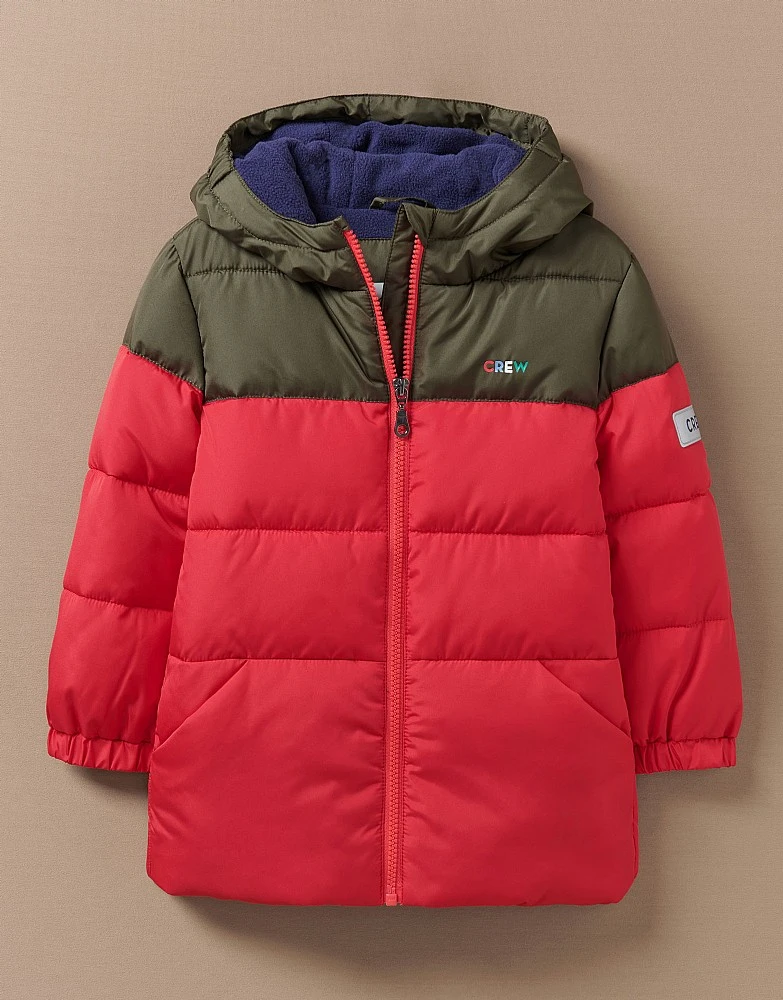 Take on the chill in our brrr-illiant padded jacket in red. Filled with a feather-free wadding and finished with our multicoloured logo printed on the chest, this is a staple for colder days. For unbeatable cosiness, layer it over a crew neck jumper.