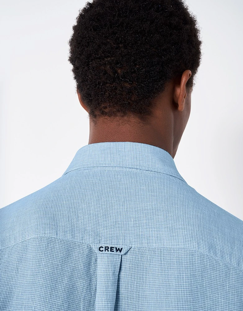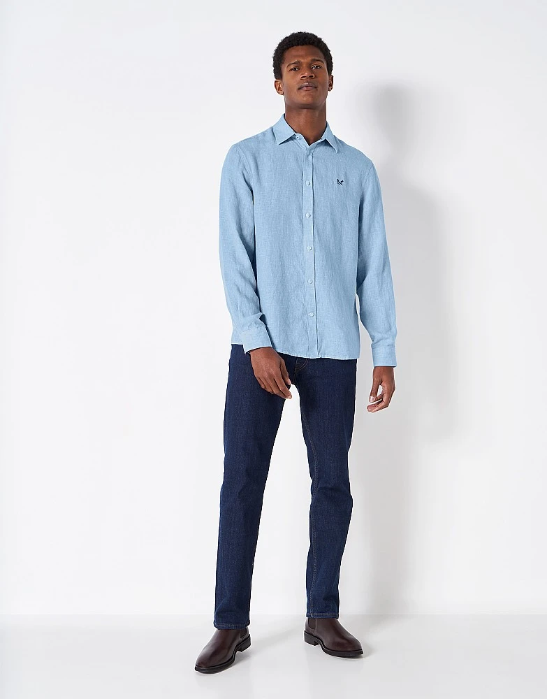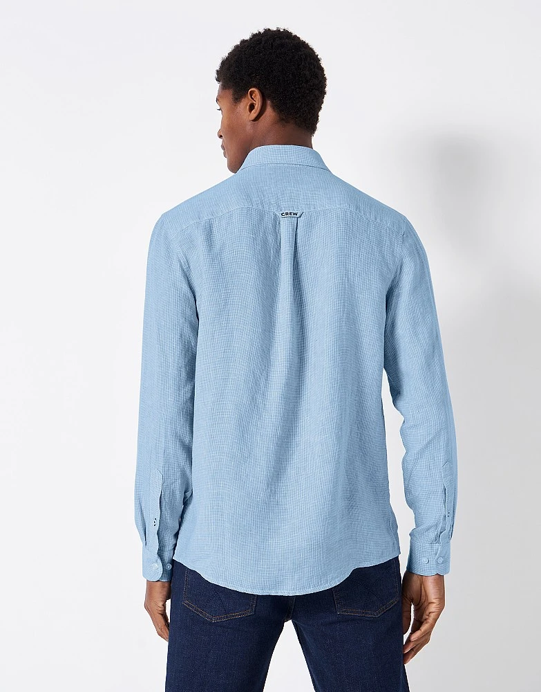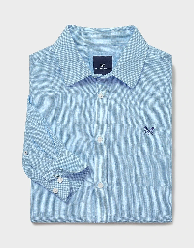 A linen shirt in blue. Cut from 100%, breathable linen in a classic fit, we’ve designed this with a timeless puppytooth design. Pair with chinos or jeans for effortless style.