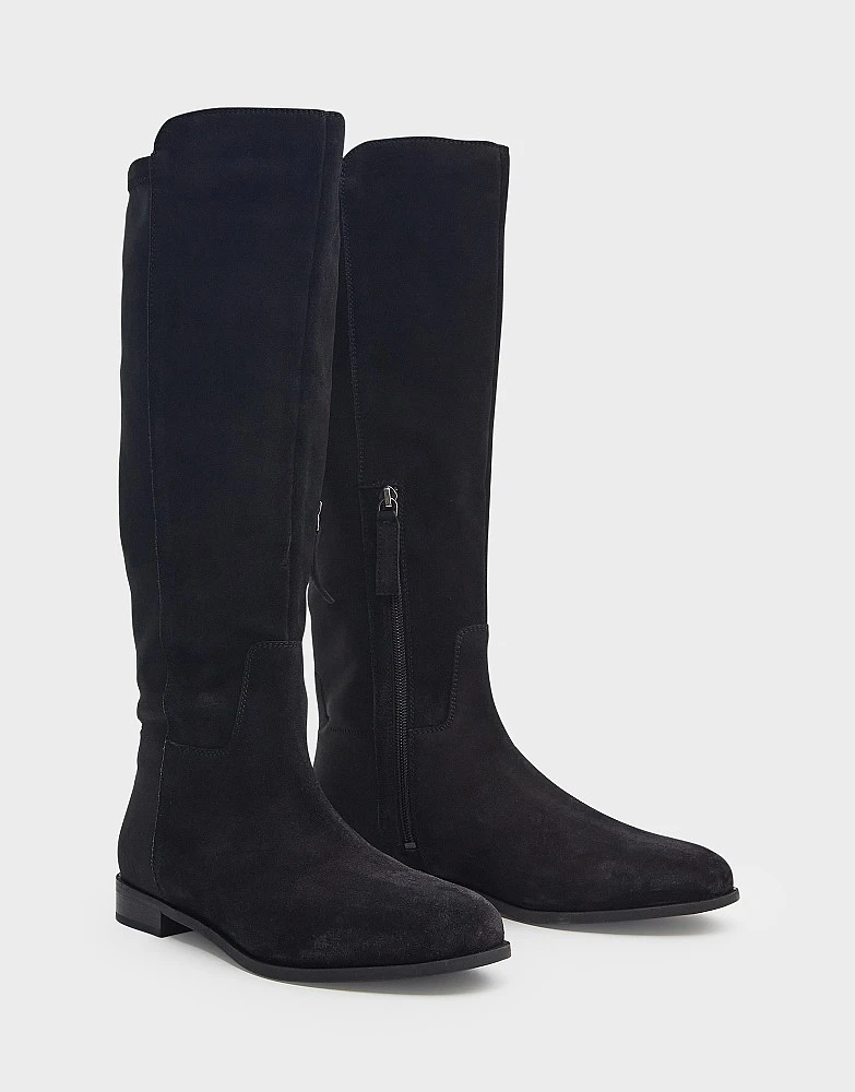 Long stretch boots in black. Soft suede on the front and elasticated at the back, these knee highs are just as stylish as they are comfortable. Designed to fit perfectly, they’ll stay up all day long – no matter what you wear them with. We love them teamed with skinny jeans and an oversized shirt.