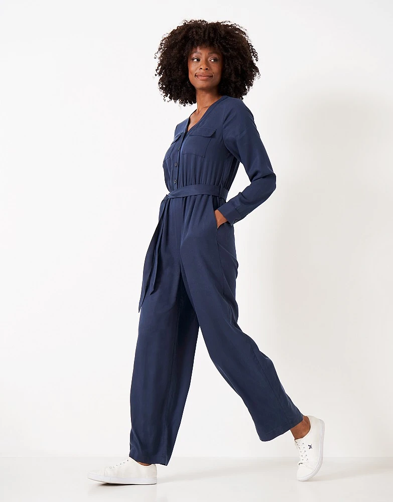 The brand new Maddie jumpsuit in dark navy. We’ve added two chest pockets to this stylish design, and button cuffs add a little extra detailing. Pair with leather trainers for a wear-all-day ensemble.