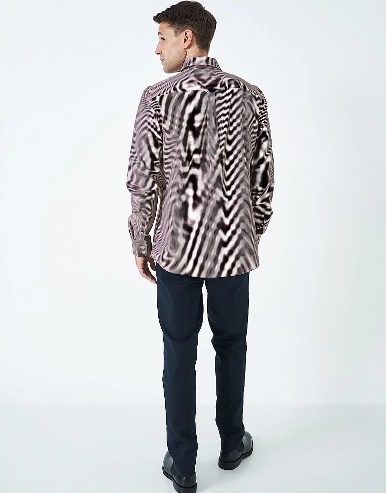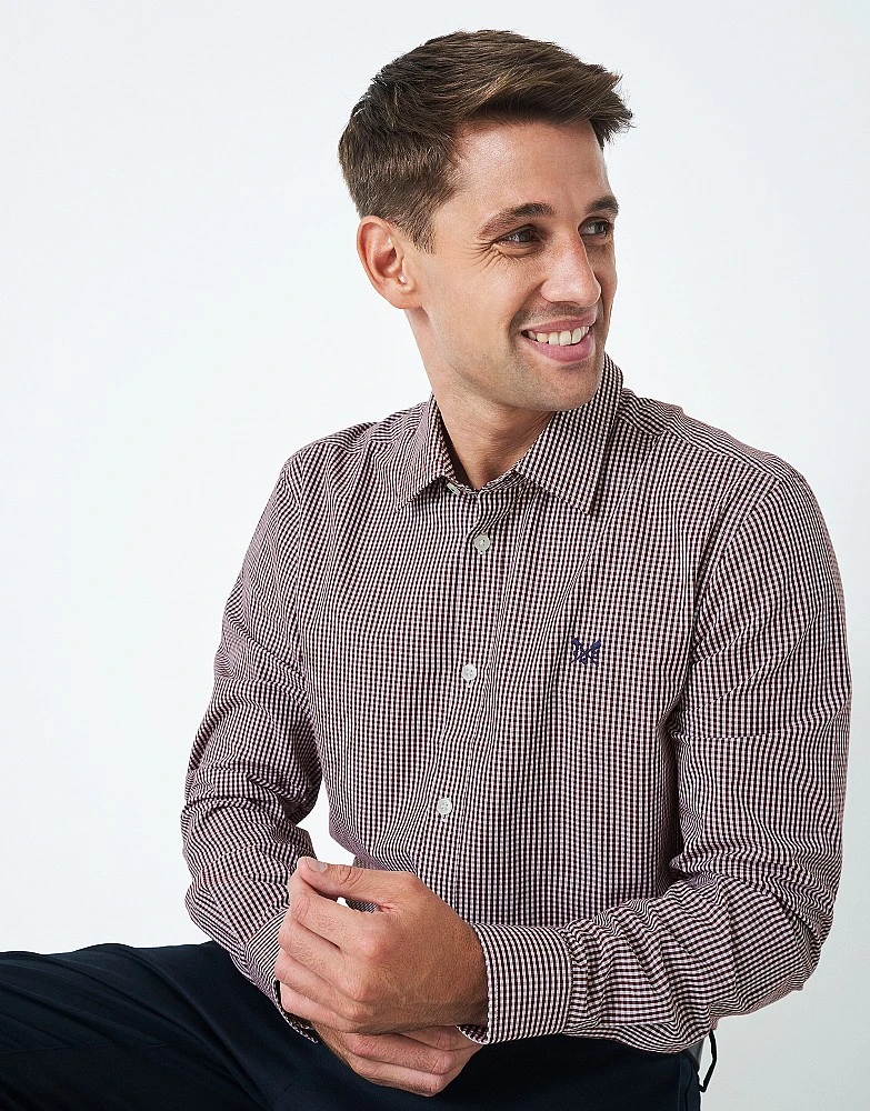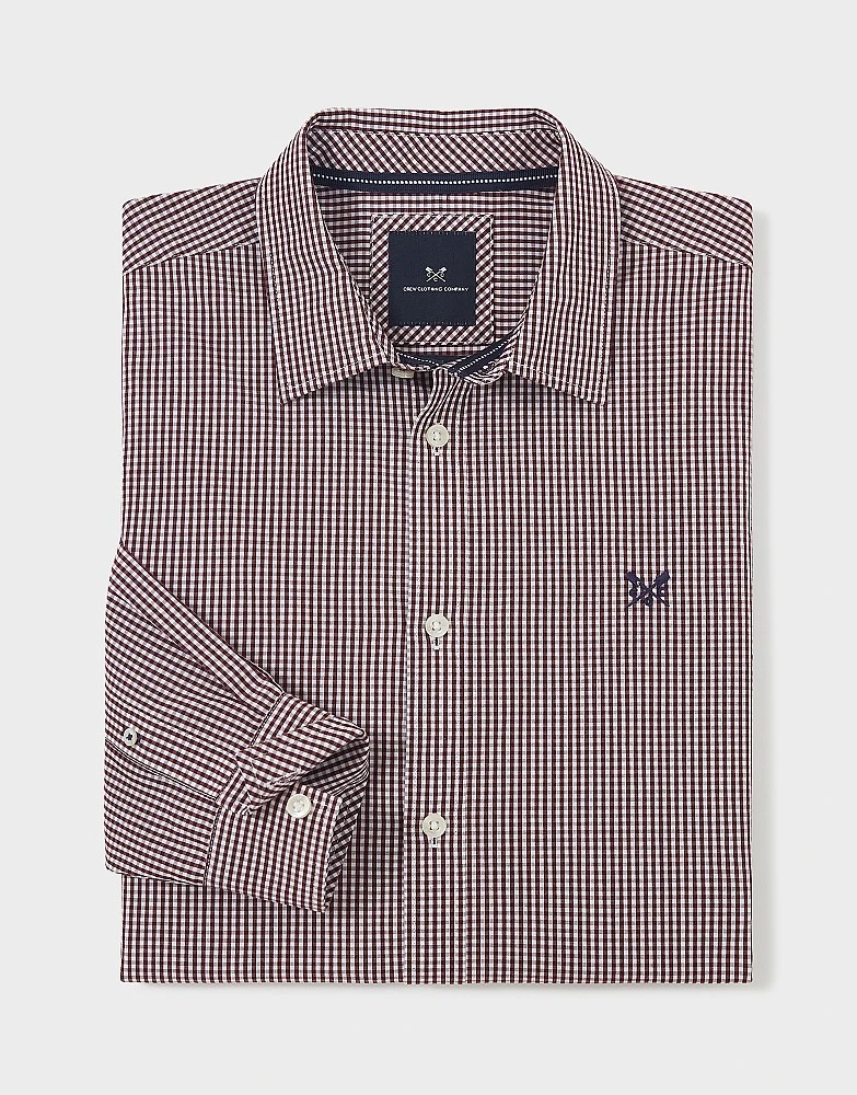 A long sleeved shirt in burgundy and white gingham. Designed with a tighter check than our classic gingham, this is a modern take on an original style. Pair with jeans, chinos or shorts for week-to-weekend style made easy. It just works.