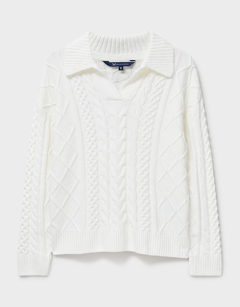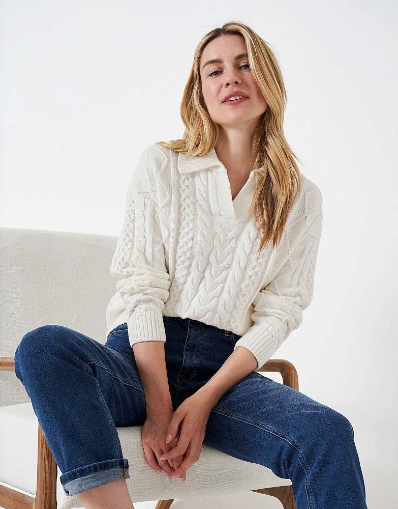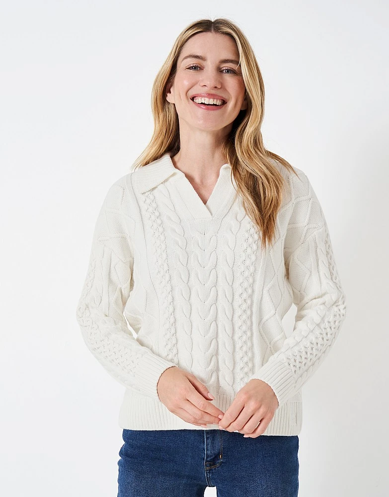 Meet your new favourite knit. Designed with a stylish cable stitch and a ribbed collar, this white jumper is a detail-driven addition to your wardrobe. Pair with denim for a look you’ll come back to all season long.