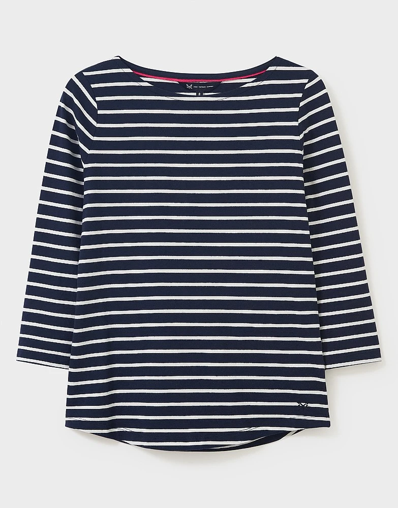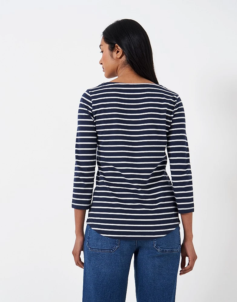 Our take on the classic Breton top in a navy and white stripe. A wardrobe staple made from lightweight supersoft cotton, we’ve added a curved hem for a flattering fit. Style with jeans and trainers on days off. Because stripes always look good.