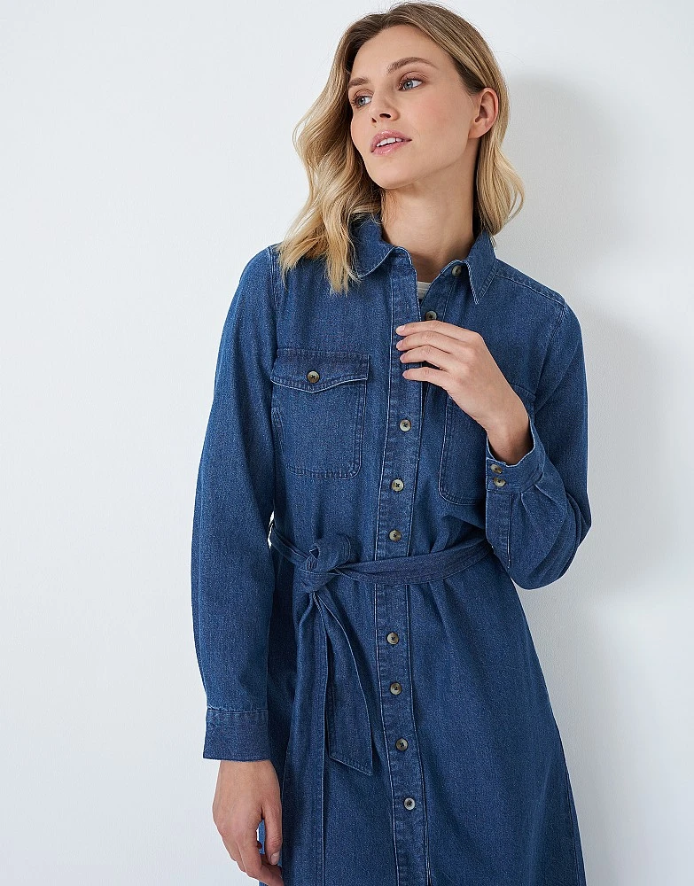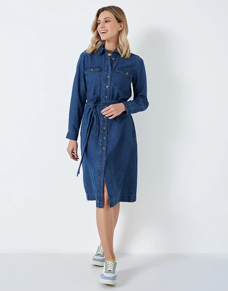 Introducing our Nola dress in dark denim. We love the flattering shape of this number, emphasised by the waist tie. A classic style your wardrobe needs, perfect for dressing up and down. We like it paired with trainers.