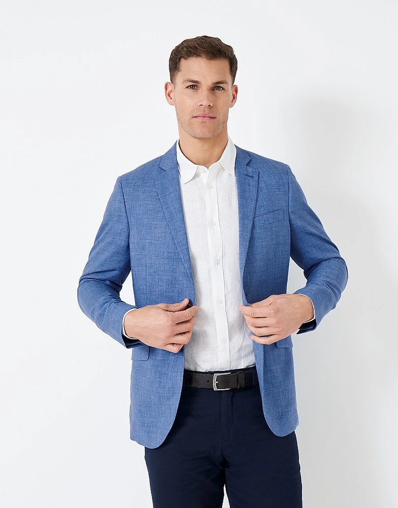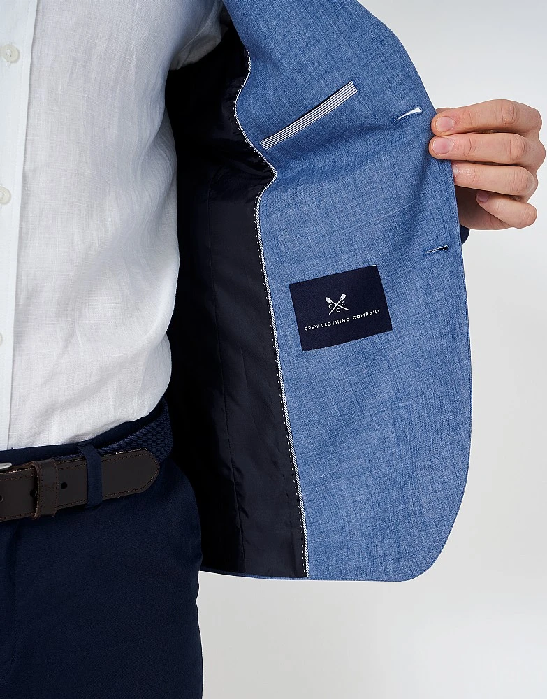 Our Oakbury linen blend blazer in blue. A timeless style that you’ll turn to time and time again. Keep it smart casual with a classic shirt and jeans, or style with chinos for when occasions call.