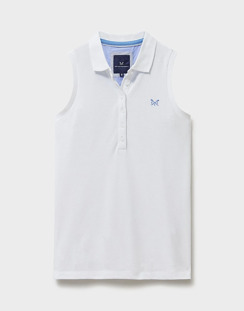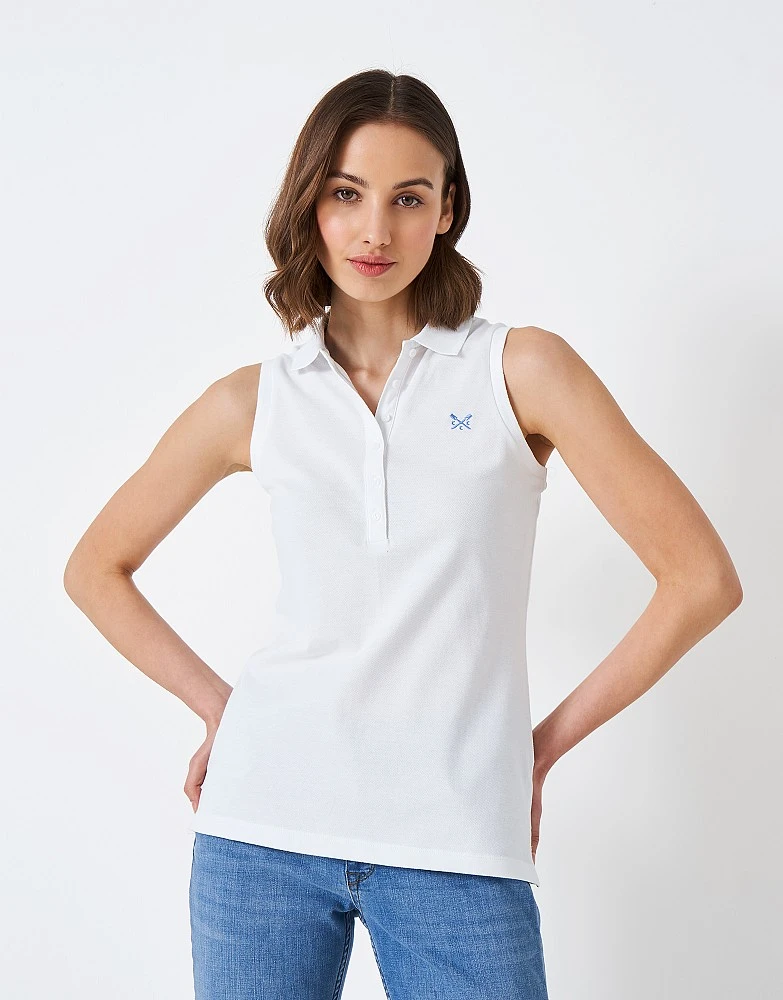 Introducing our sleeveless Ocean Polo in white. Taking inspiration from our heritage style, this shirt features all the same signature details – but it’s crafted from organic cotton pique that’s grown without pesticides. This helps prevent chemicals from making their way into our waterways. Look out for our crossed oars proudly embroidered on the chest. A smart choice.