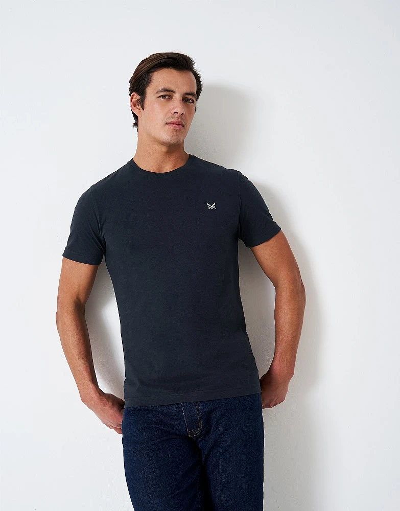 Our Ocean Tee in dark navy. With our crossed oars proudly embroidered on the chest, this new take on our much-loved supersoft t-shirt is made from 100% organic cotton that’s grown without pesticides. This helps result in less pollution running into our waterways. A true coastal-inspired classic.