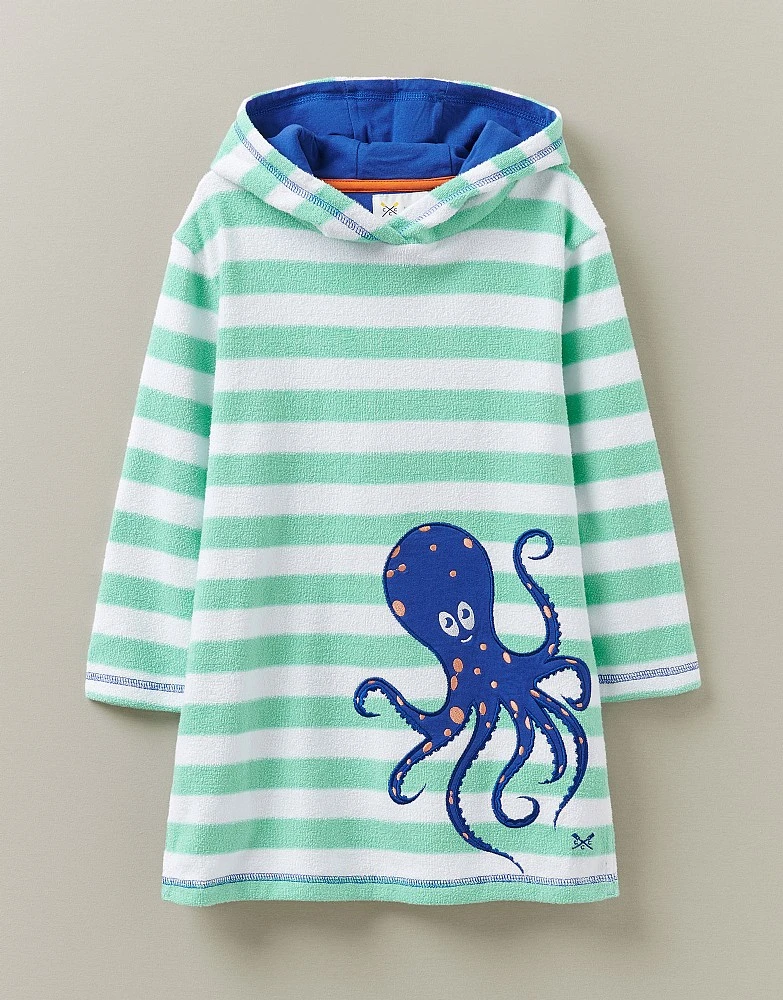 An octopus towel cover-up. Ensure seaside adventures don’t end with shivers thanks to this cosy number. The hood and long sleeves are perfect for helping little ones warm up while the octopus tentacle design adds more reasons to love it.