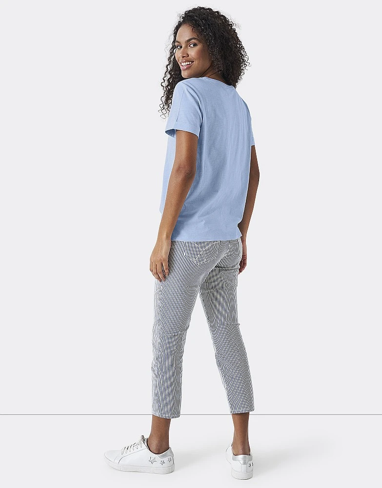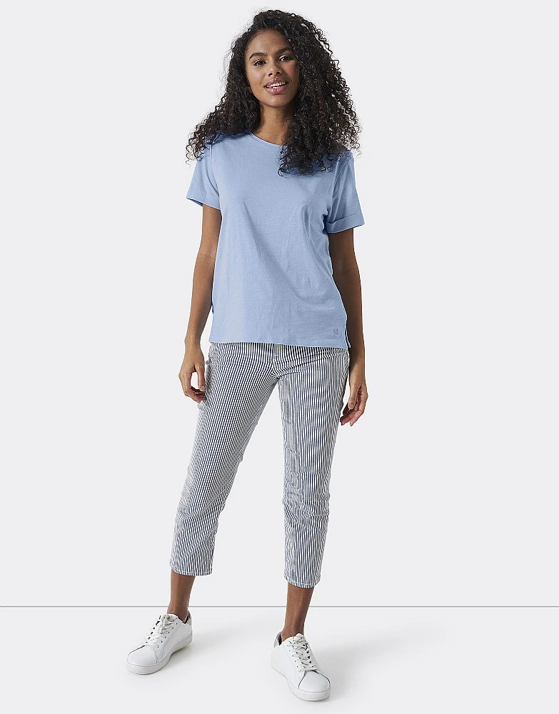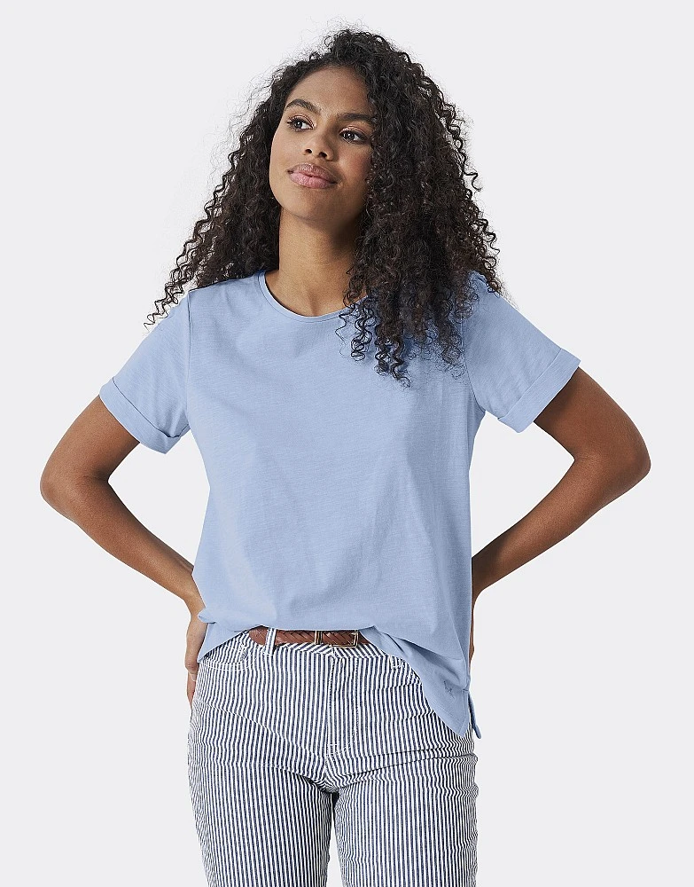 Let us present the perfect crew neck slub t-shirt in blue. With roll cuffs and side split seam detail, this takes the classic tee and makes it interesting. It’ll be a seriously useful addition to your casual ensembles.