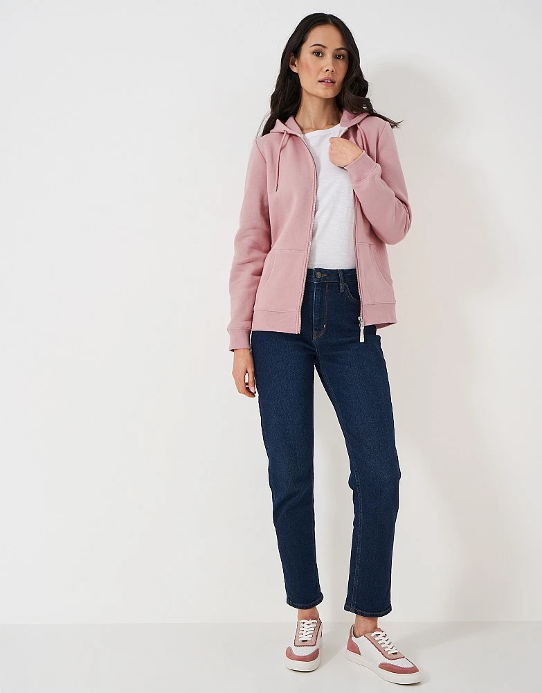 A classic zip through hoody in pink. Crafted from a supersoft cotton blend, the crossed oars embroidered on the chest make a nod to the coastal. Layer over a Breton and settle into the weekend. Made with functionality and versatility in mind.