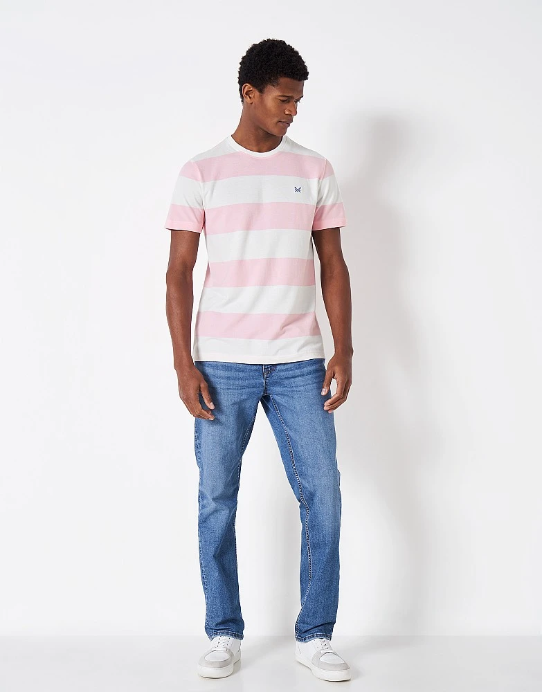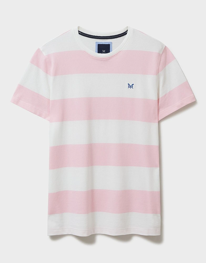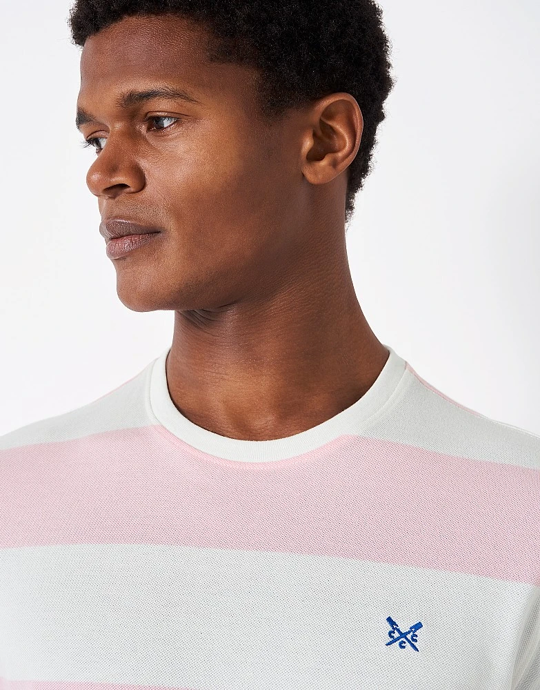 A short sleeve t-shirt with pink and white stripes. Cut from 100% cotton pique and with our crossed oars embroidered on the chest. A summer staple that you’ll wear time and time again. Just add jeans.