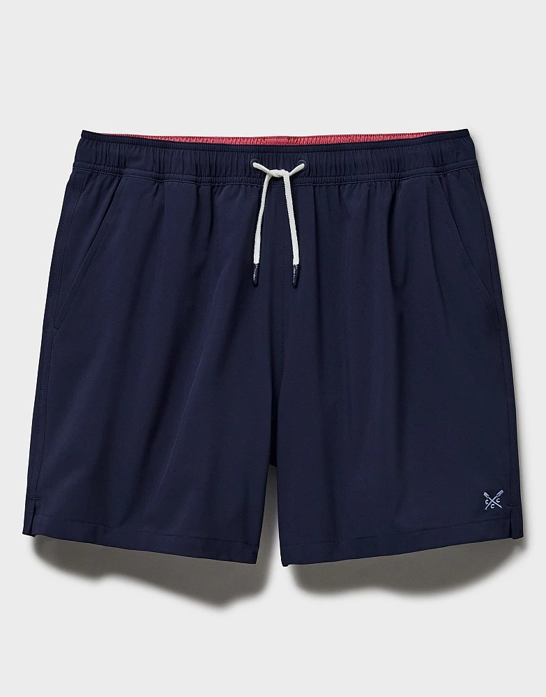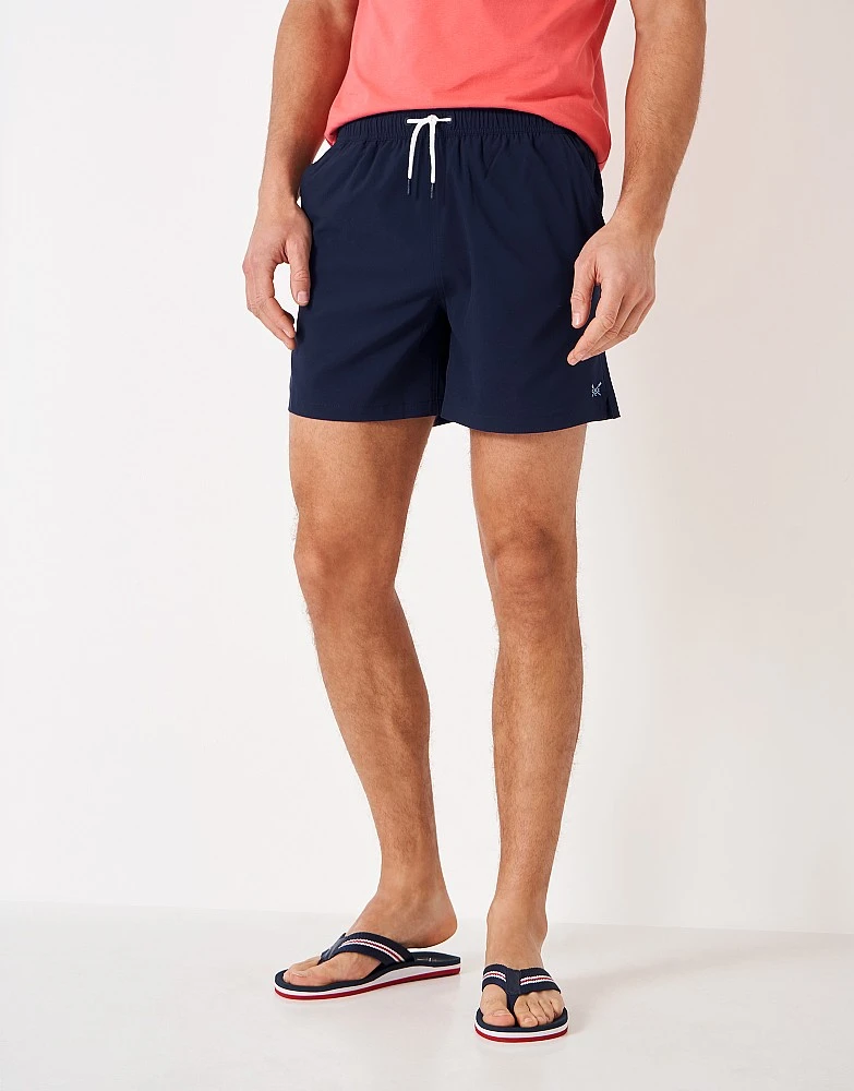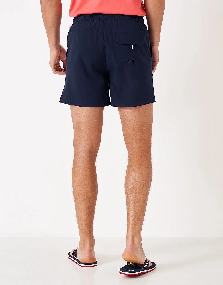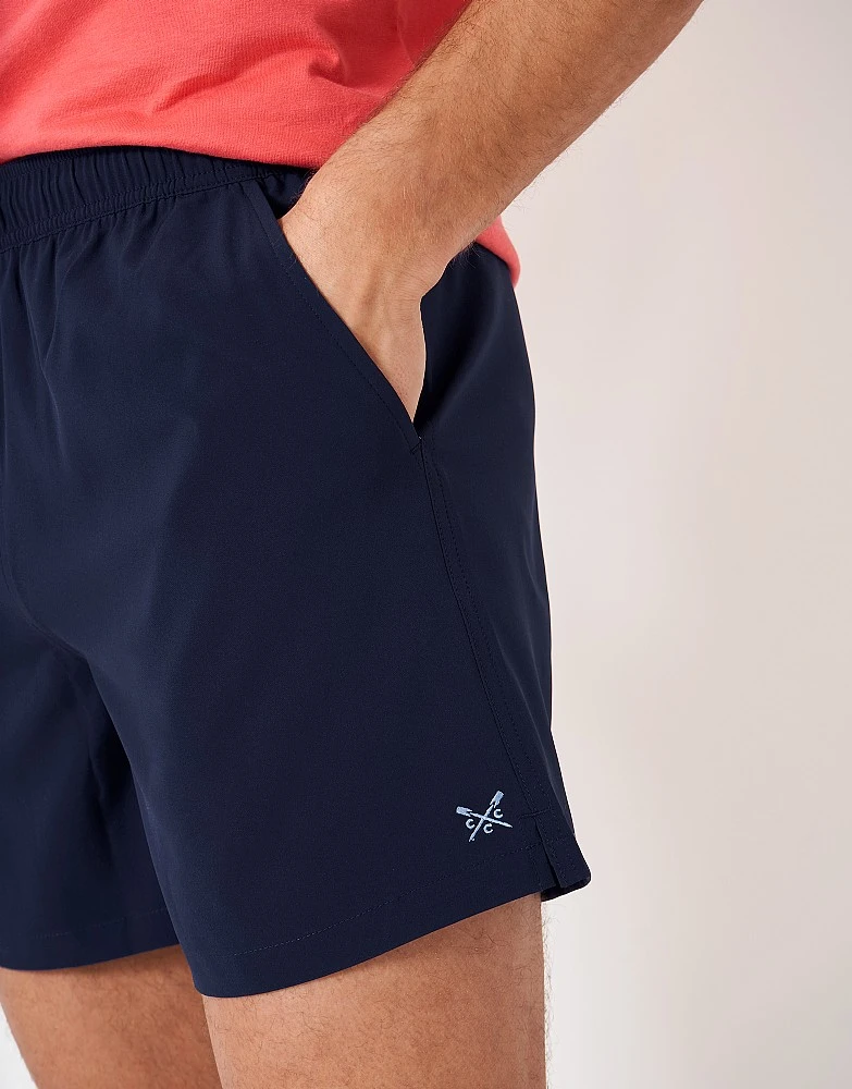 Swim shorts in heritage navy. Quick drying, with a back pocket for your essentials and our crossed oars embroidered on the hem. Pair with linen or a tee for strolls from the surf to shoreside drinks. Classic.